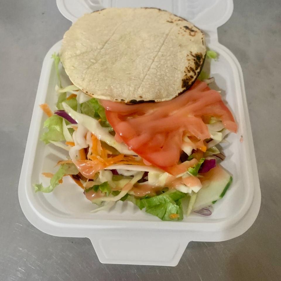 2 Tortillas suaves, ensalada y salsas.