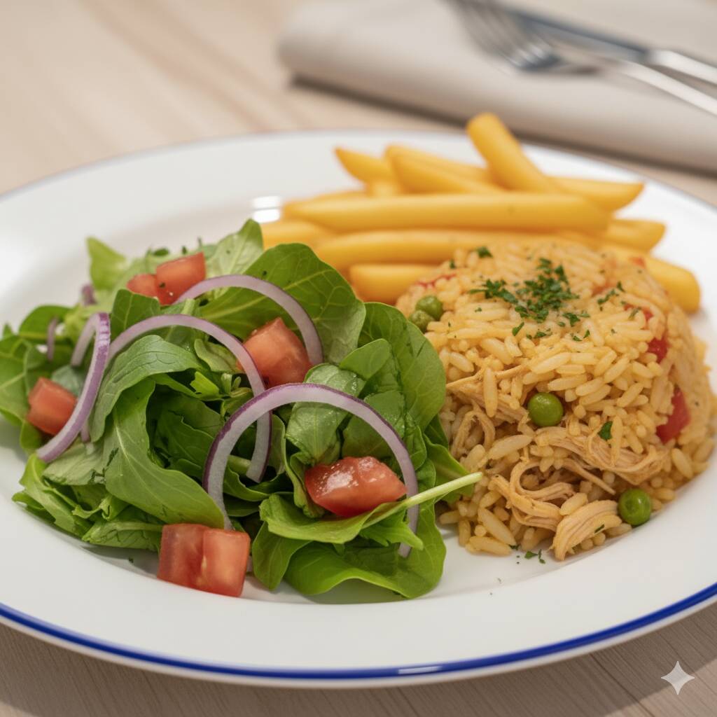 Arroz con Pollo + Papas Fritas