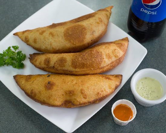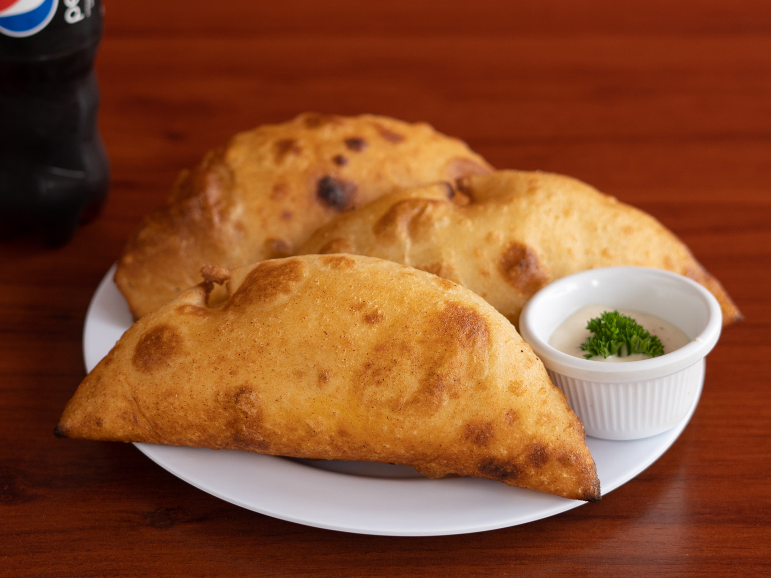Incluye una Pepsi 355ml. Rellenos de carne mechada, pollo, cazón, queso, carne molida y frijol con queso blanco. Incluye 3 empanadas.