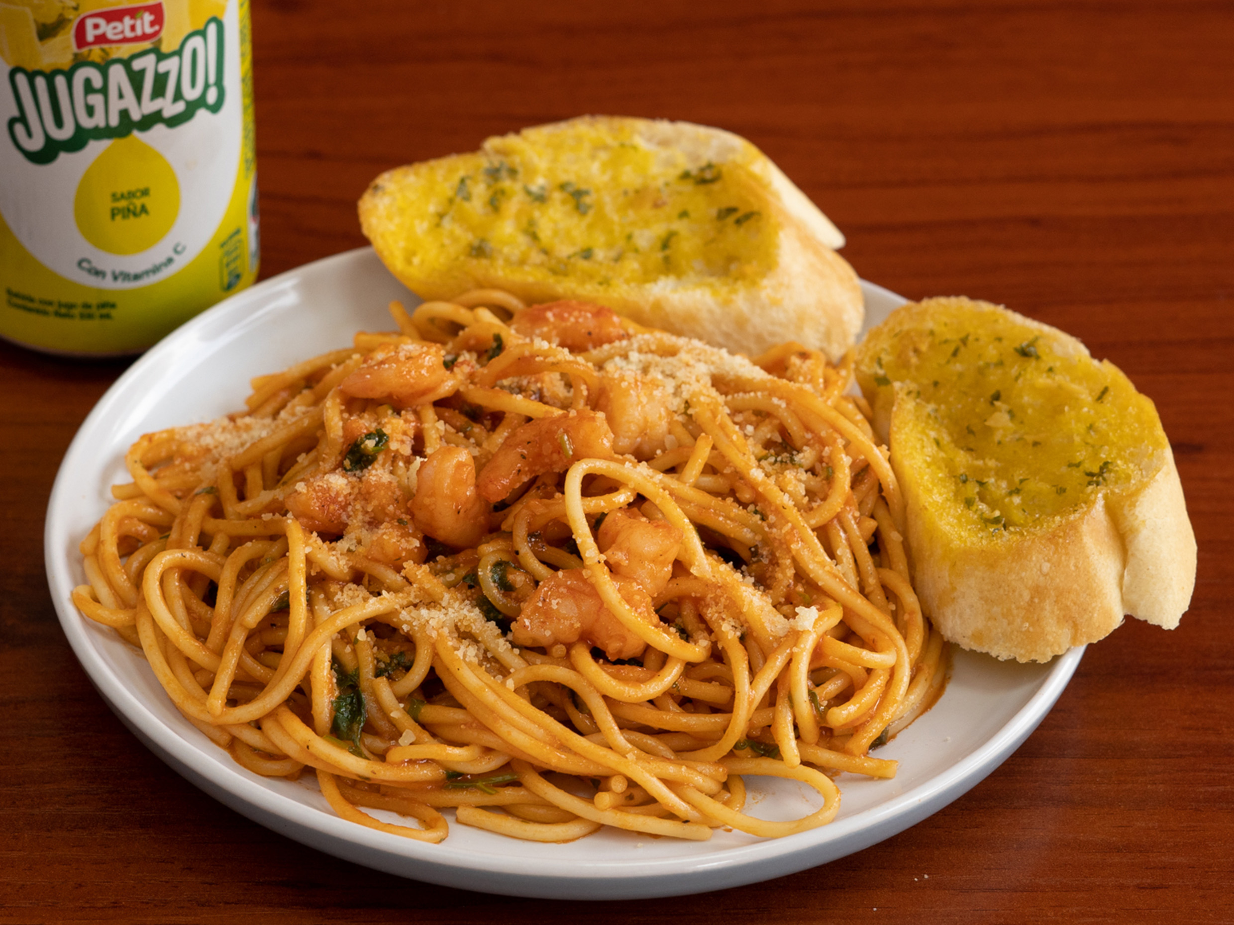 En salsa. Incluye pan de ajo y un gaseosa 250ml