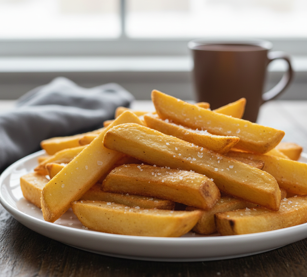 Delicioso filet de pescado empanizado acompañado de papas fritas y ensalada