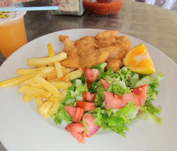 Pescado, Papas, ensalada + Refresco de la casa