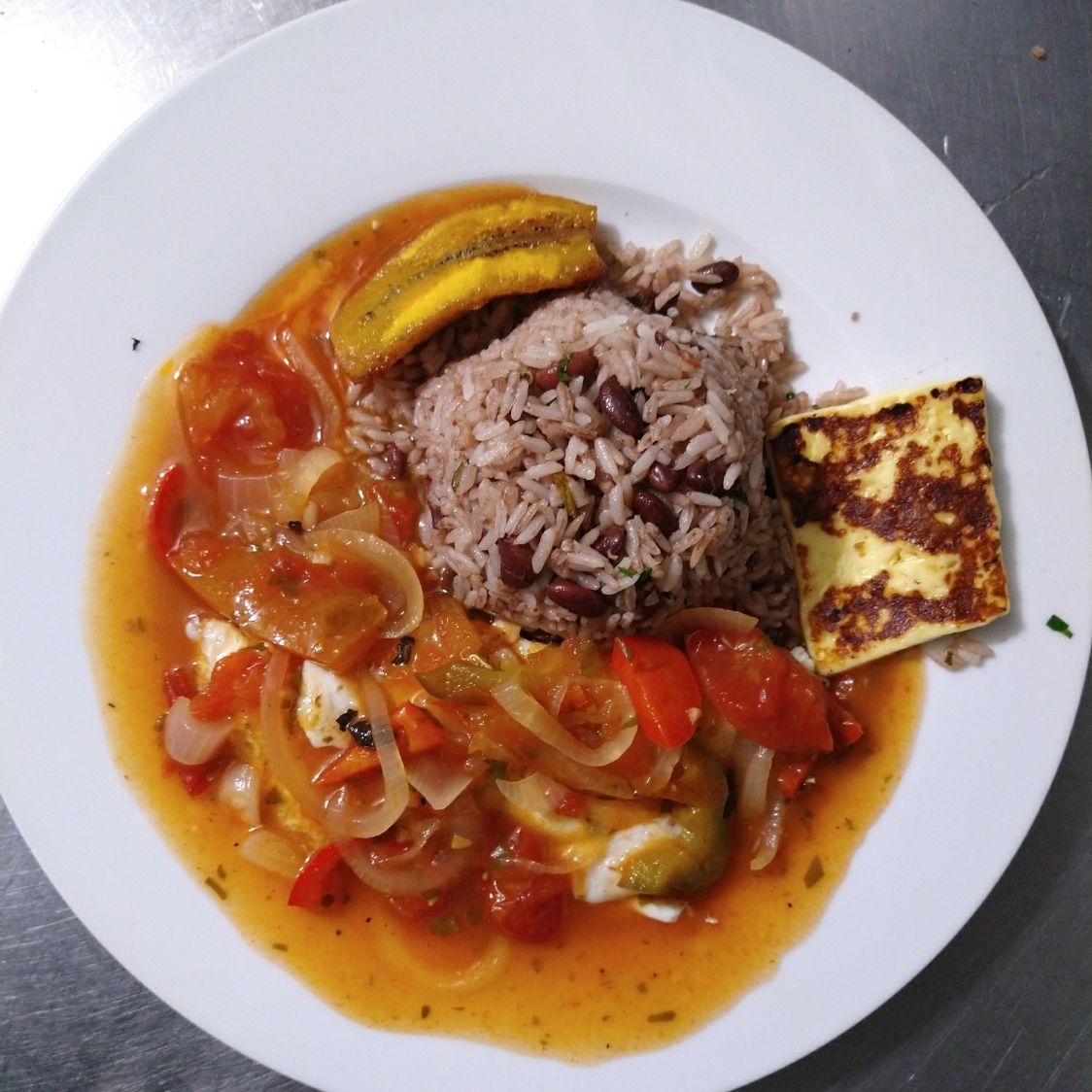 Pinto con Huevos Revuelto con Cebollino y Platano