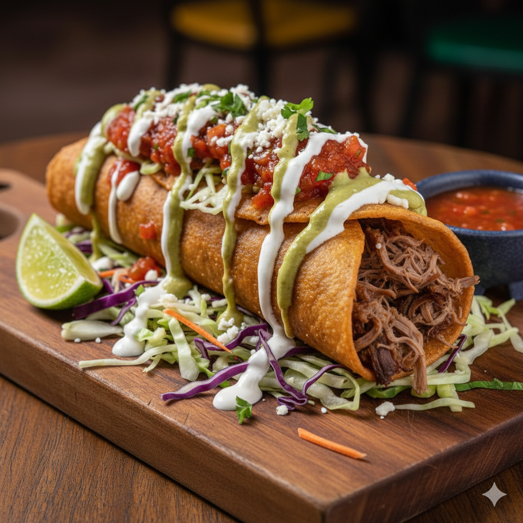 Delicioso burrito de carne mechada, frijoles molids, lechuga, tomate