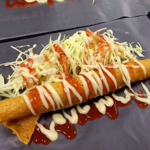 Taco grande con doble relleno, queso y salsas especiales.