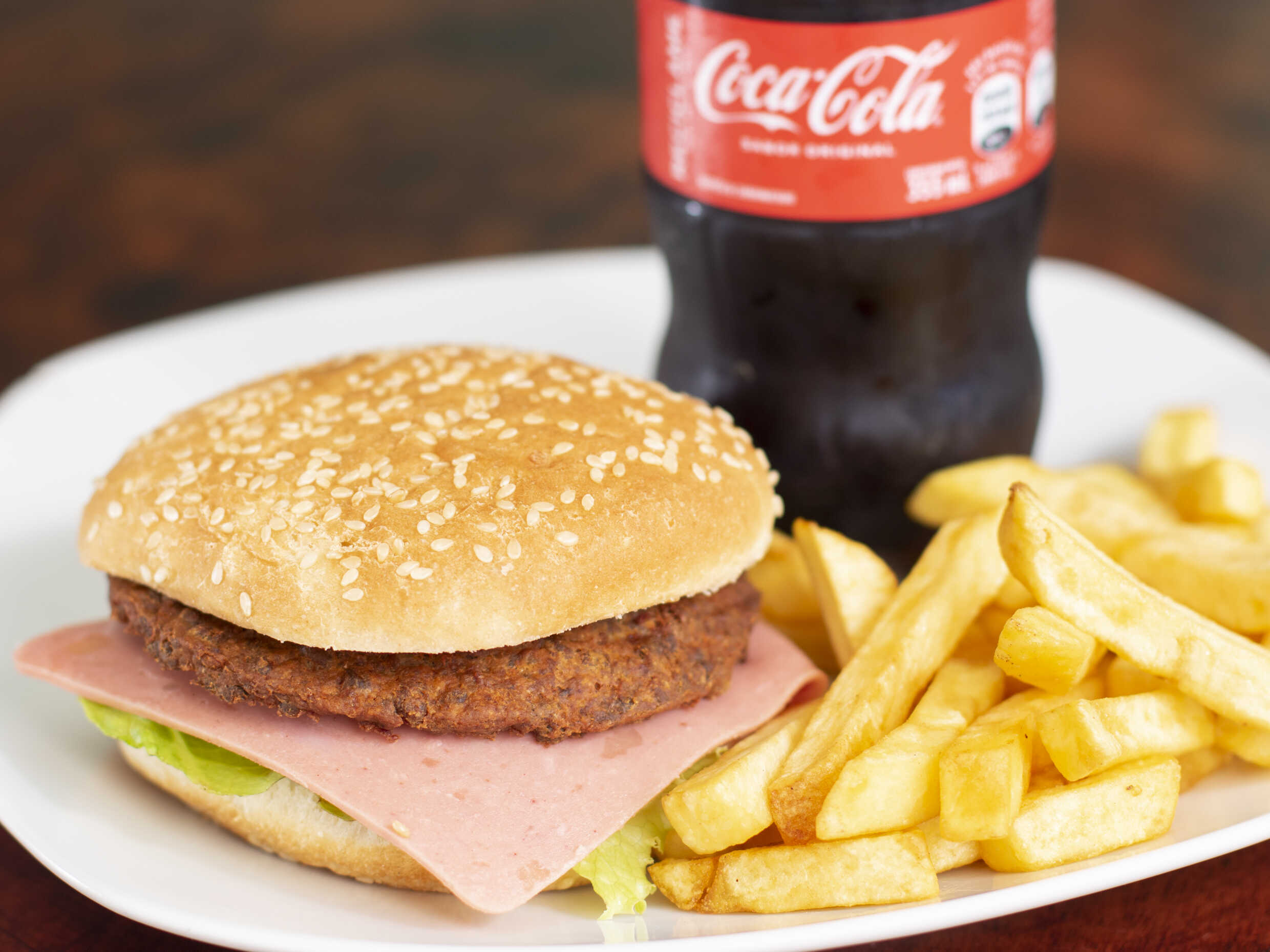Papas Fritas + Coca Cola Regular 355ml + Hamburguesa