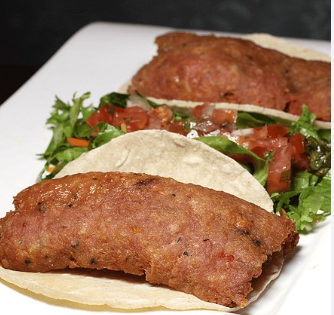 2 empanadas de pollo, pinto, queso o frijol con queso.
