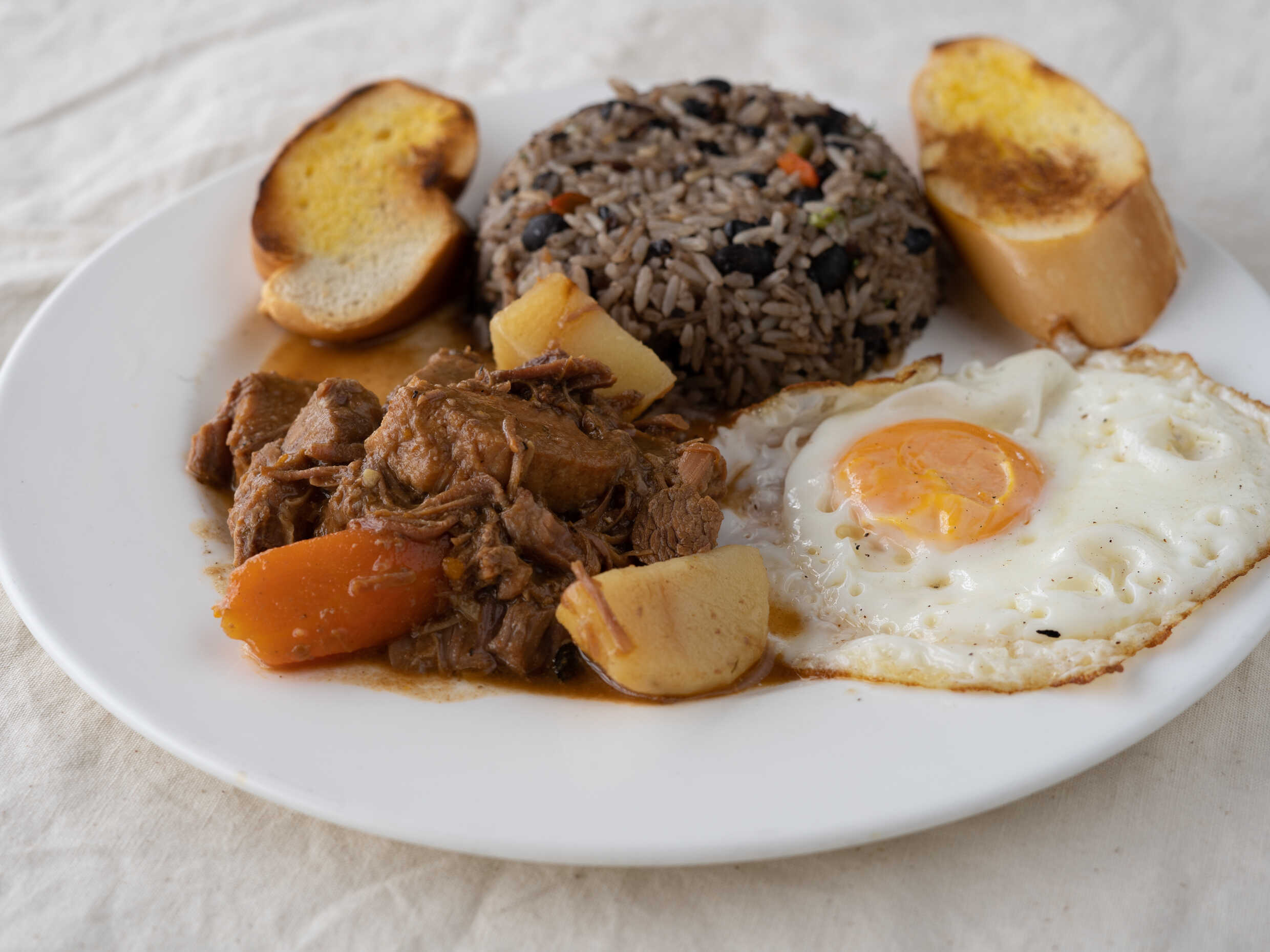 Este desayuno consiste en elegir 3 opciones de nuestra lista, incluye bebida café 8 onzas o refresco 12 onzas. No incluye gallo pinto, si lo quieres debes agregarlo.