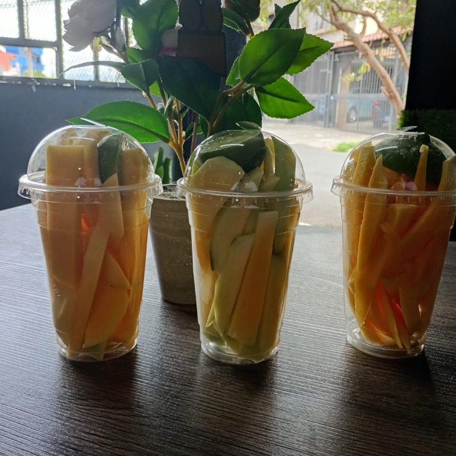 mangos con tajin -limon - chamoy de mango - sal- Salsa valentina - lizano