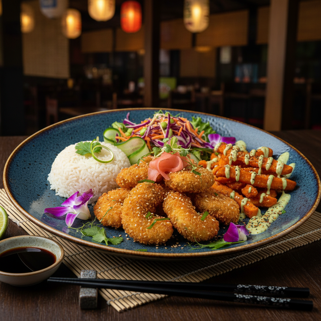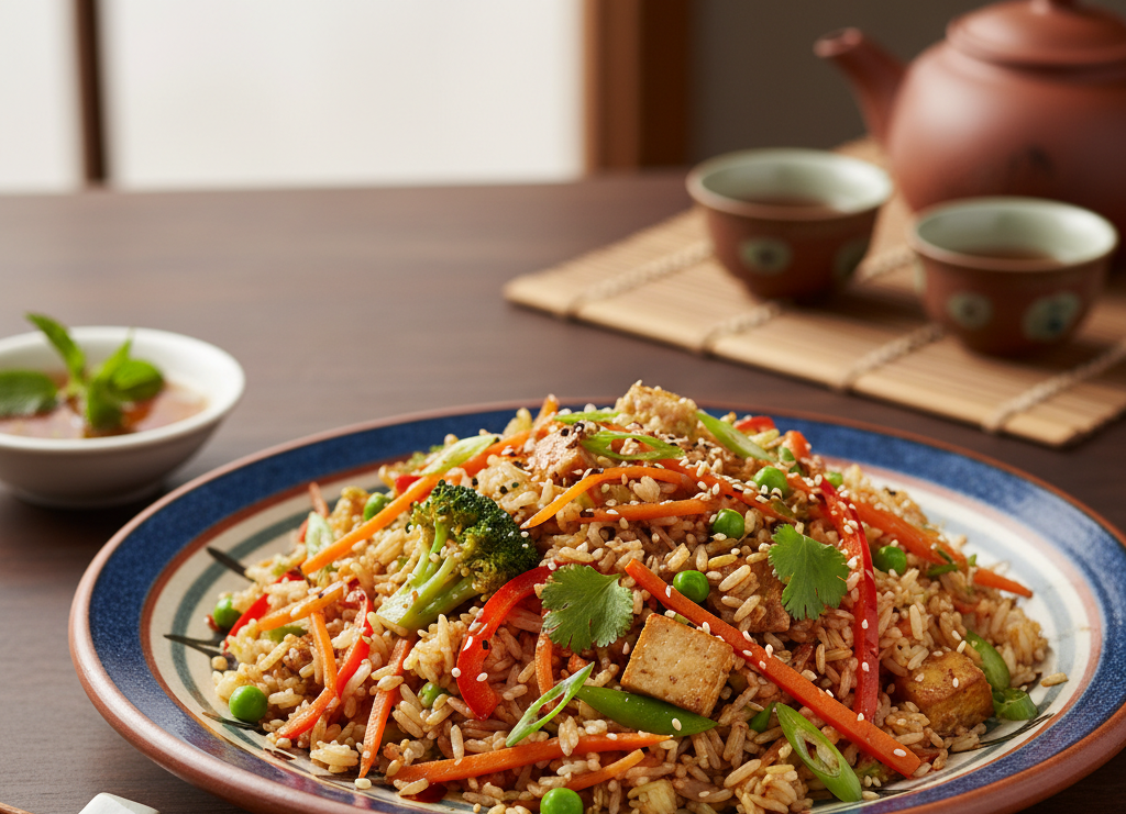 ¡Deléitate con vibrante nuestro Arroz Frito con Vegetales al estilo asiático! 🍚🥢 Preparado con arroz perfectamente cocido, mezclado con zanahorias crujientes, guisantes frescos, brócoli tierno y pimientos rojos, salteado a la perfección con un toque de salsa de soja y ajonjolí. Una explosión de sabor y color en cada bocado.