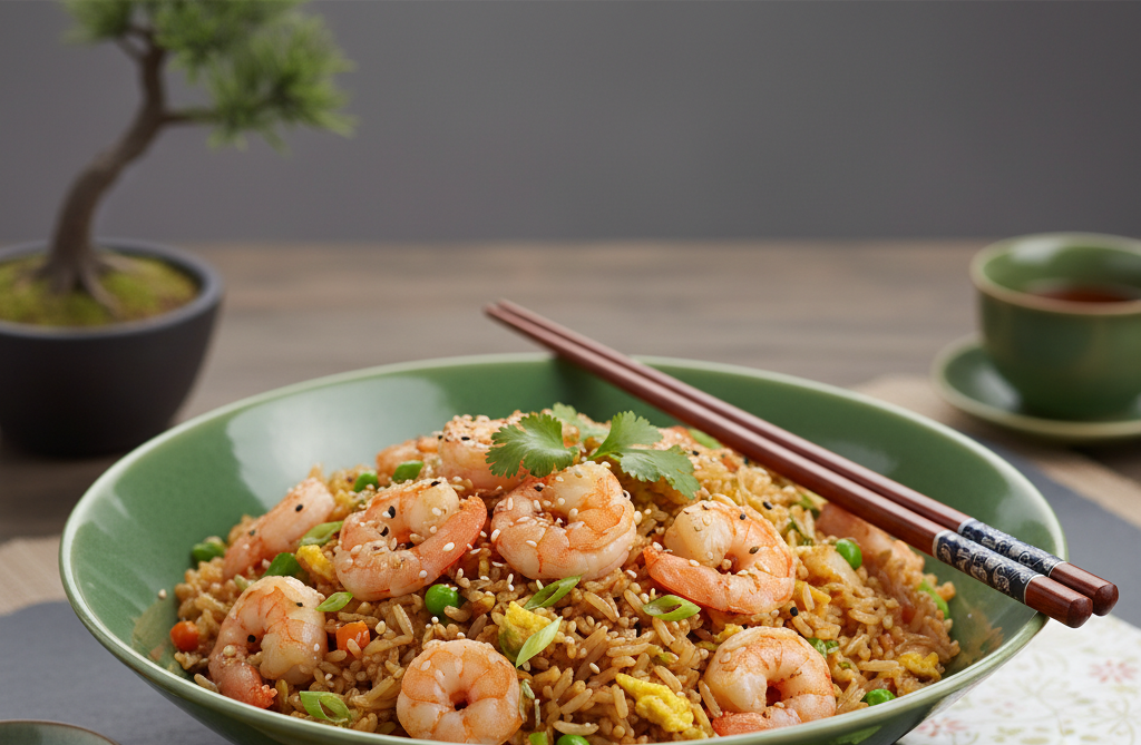¡Disfruta de nuestro exquisito Arroz Frito con Camarones! 🍤 Una mezcla perfecta de arroz jazmín salteado con vegetales frescos, huevo y jugosos camarones, aderezado con nuestra salsa secreta. ¡Una explosión de sabor asiático en cada bocado! 🍚🥢