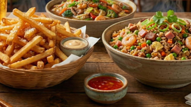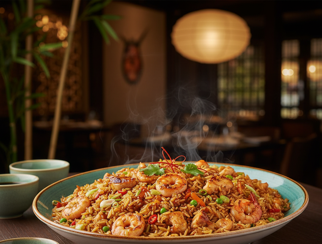 ¡Descubre nuestro Arroz Frito Especial de la Casa! 🥢 Una exquisita combinación de arroz perfectamente salteado con camarones jugosos, trocitos de pollo tierno, vegetales frescos y nuestra salsa secreta. ¡Una explosión de sabores asiáticos en cada bocado! 🍚🍤🍗