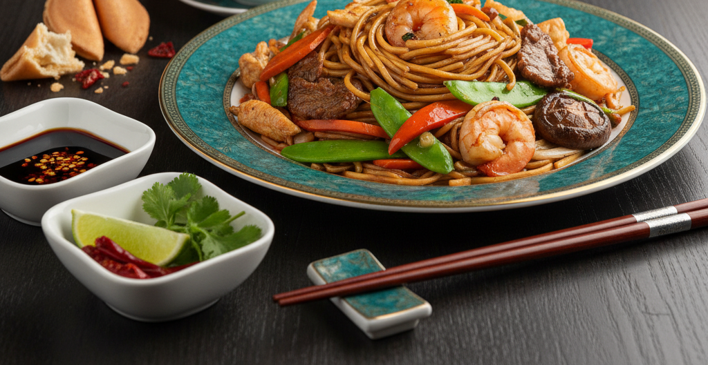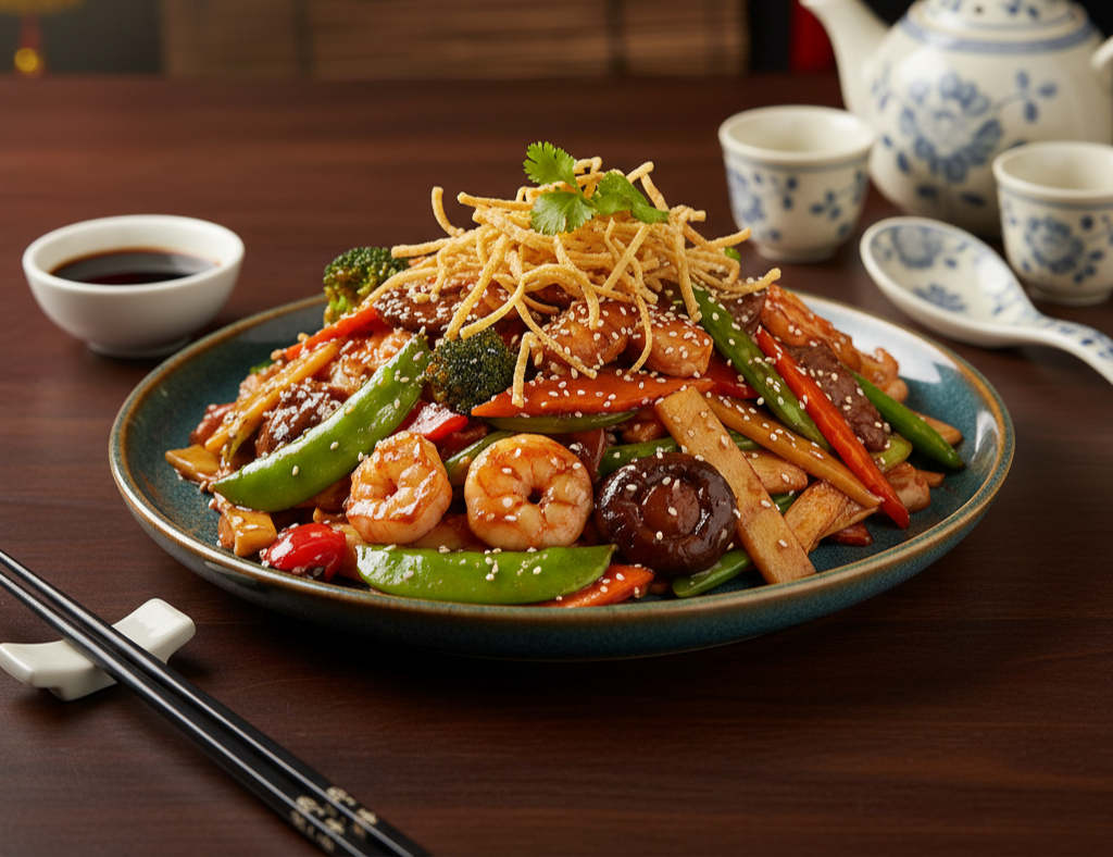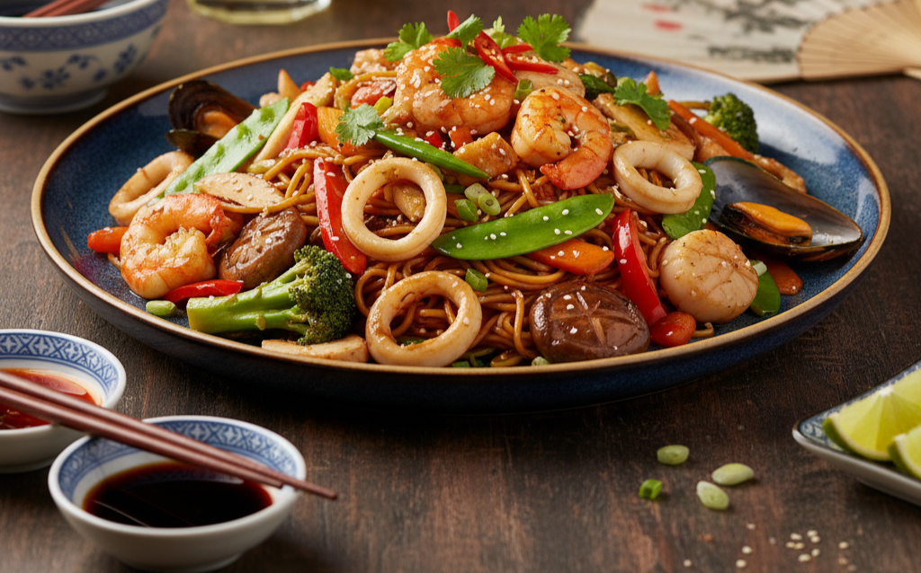 ¡Disfruta de nuestro exquisito Chop Suey con Mariscos! 🍜 Fideos salteados con camarones jugosos, calamares tiernos, vieiras y mejillones frescos, acompañados de vegetales crujientes y una salsa asiática irresistible. ¡Una explosión de sabor en cada bocado!