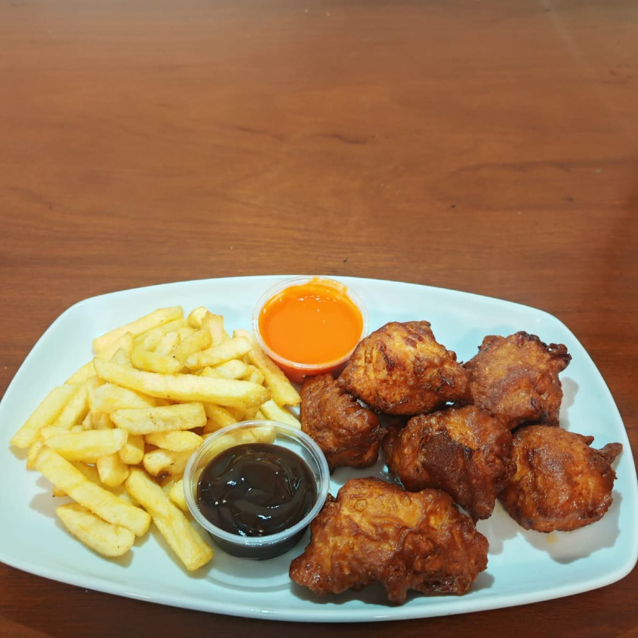 Deliciosos Nuggets con papas fritas mas 2 Salsas a elegir