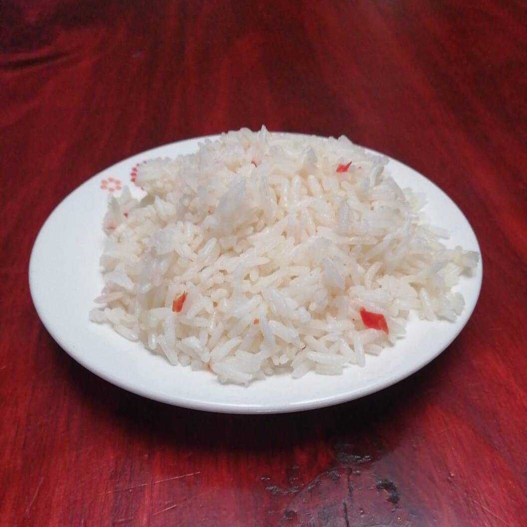 Gallo pinto preparado con frijol rojo, huevo al gusto, pan o tortilla casera.
