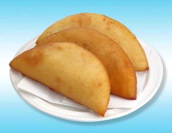 Pescado entero frito, patacones y ensalada verde (lechuga, tomate, zanahoria, cebolla, repollo morado y pepino). Adicional de aderezo de la casa (mostaza, ajo, perejil).
