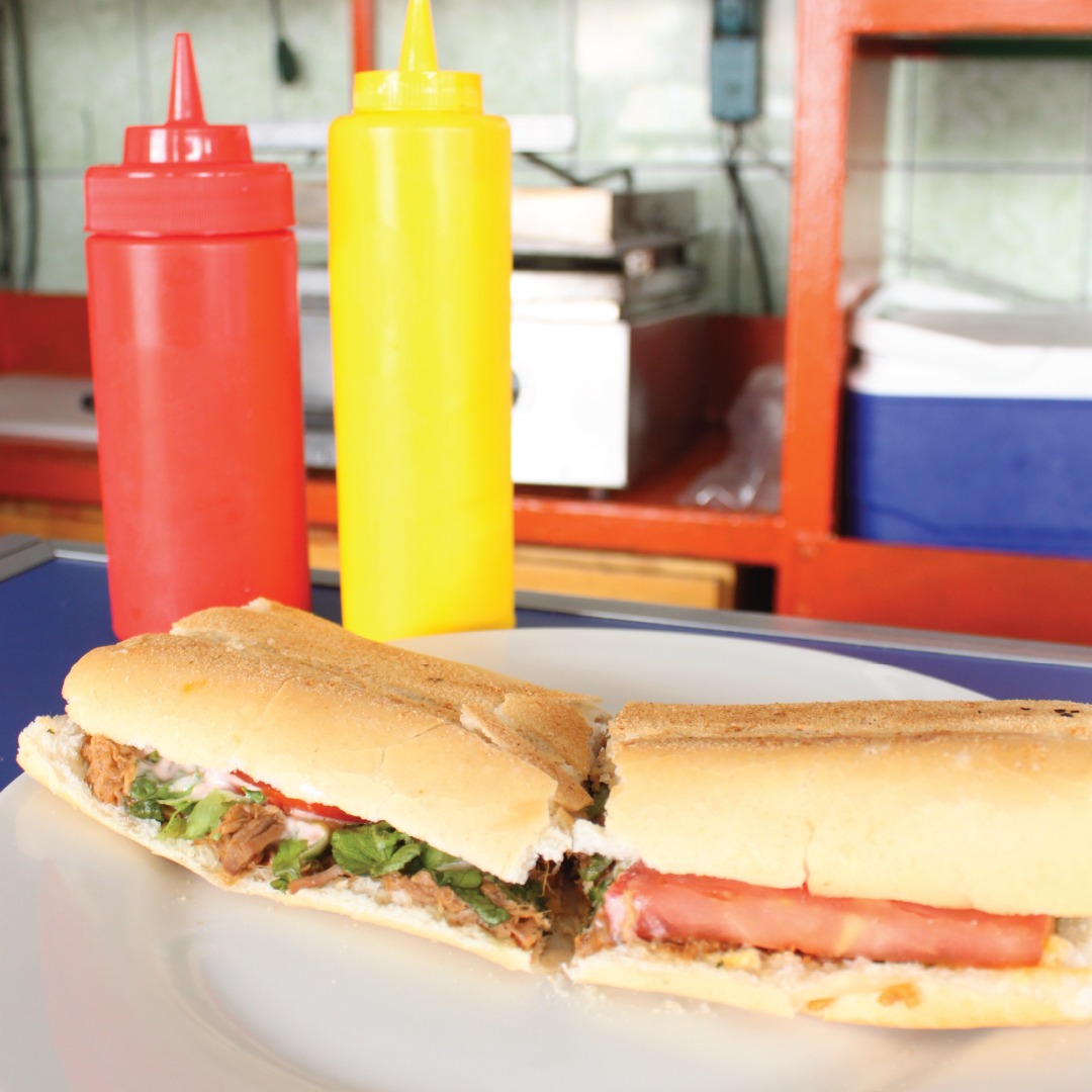 Preparado con delicioso pan baguette, lechuga, tomate, salsa de tomate y mayonesa. Acompañados de papas de fritas y refresco a elegir