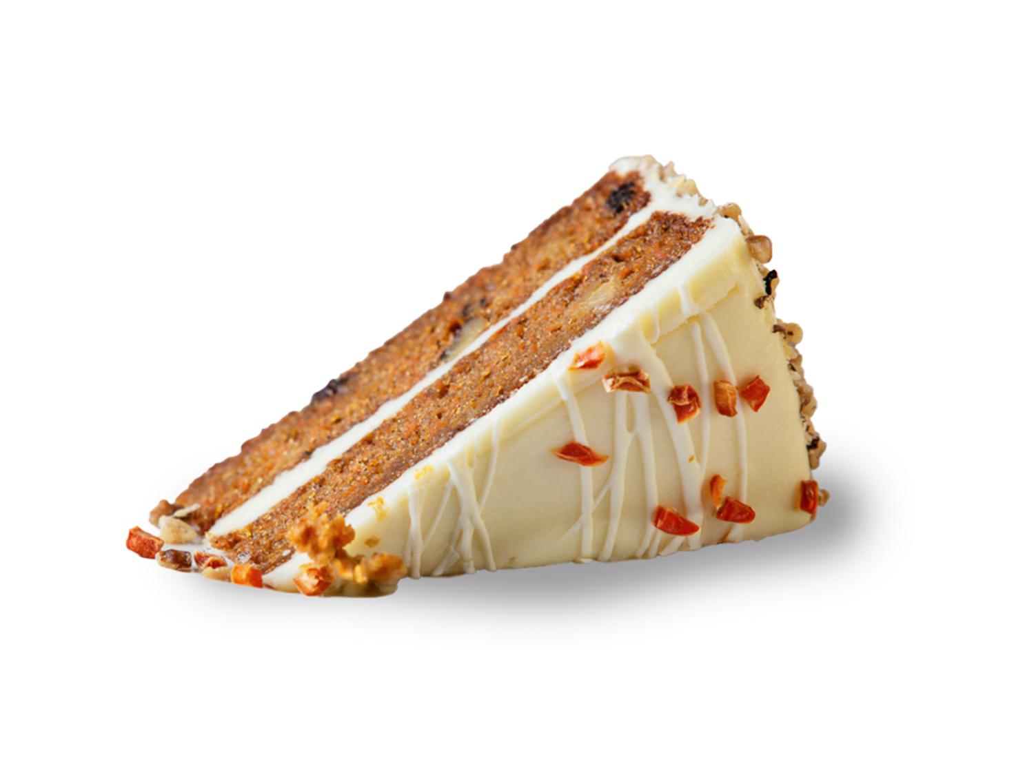 Pastel de zanahoria suave y esponjoso, con notas de especias y zanahoria rallada, cubierto con un cremoso frosting.