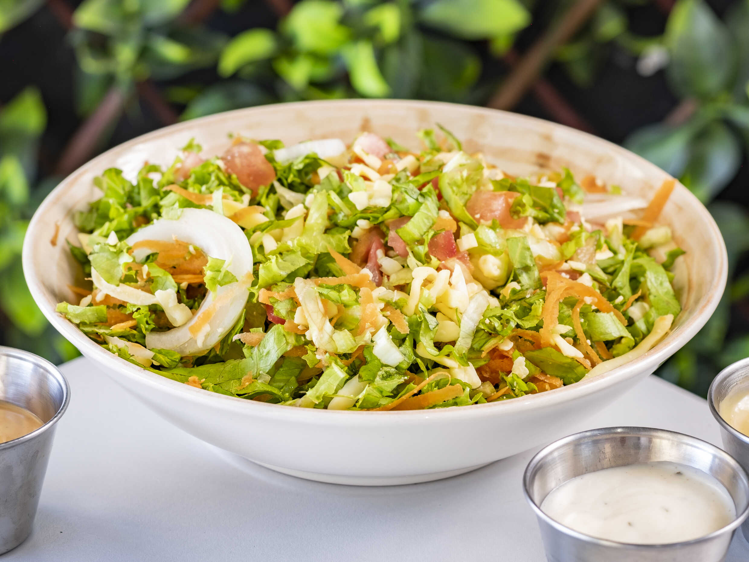 Lechuga, zanahoria, cebolla, queso mozarella, maiz dulce y tomate