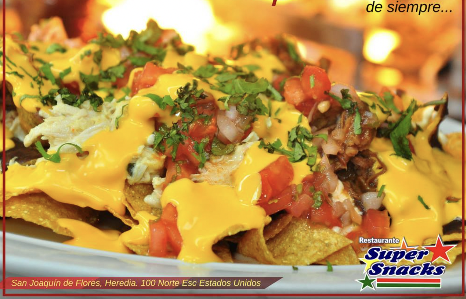 Tortillas tostadas, acompañadas con su carne a elección, salsa cheddar, pico de gallo, natilla, frijoles