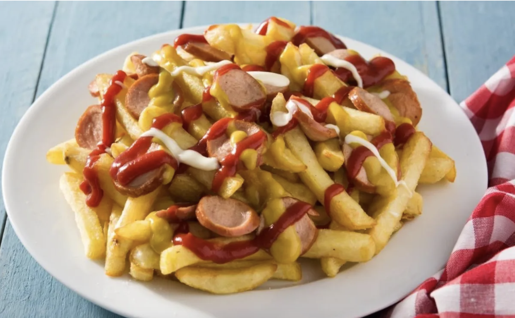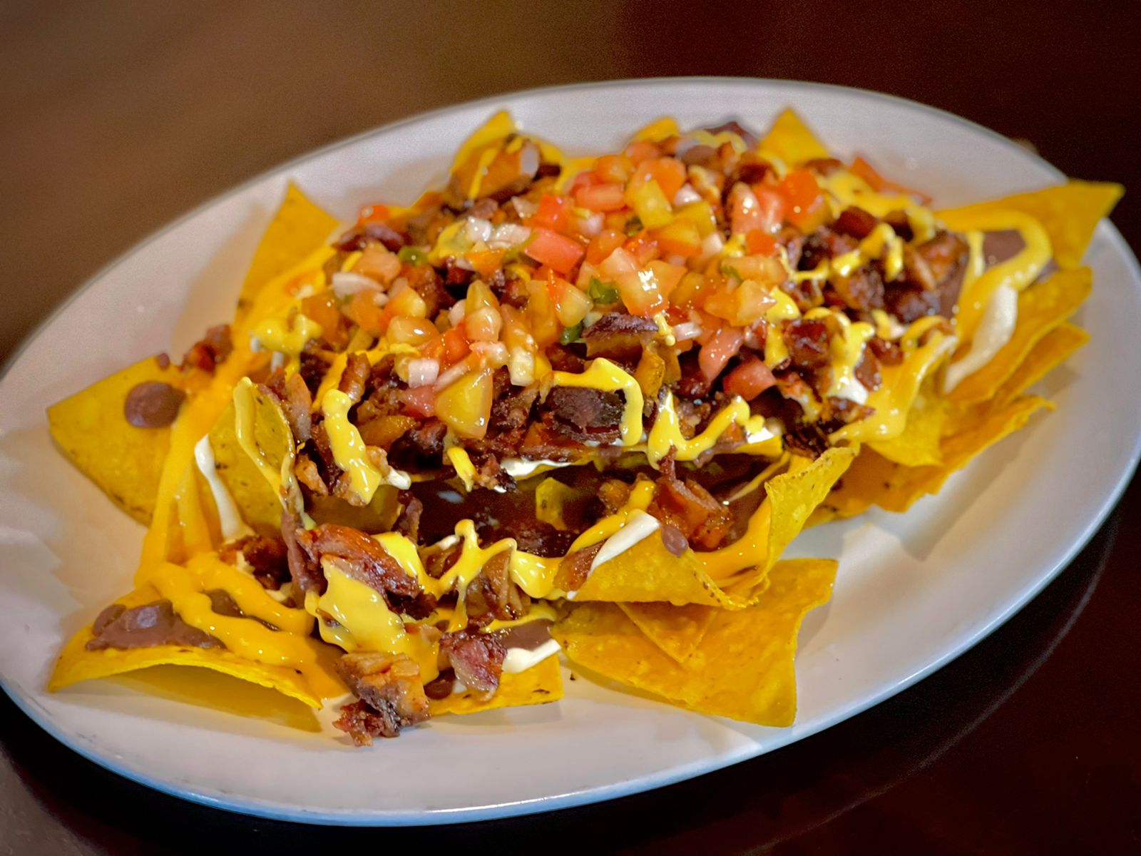 Papas fritas, con carne a elecion, pico de gallo, natilla, salsa cheddar.