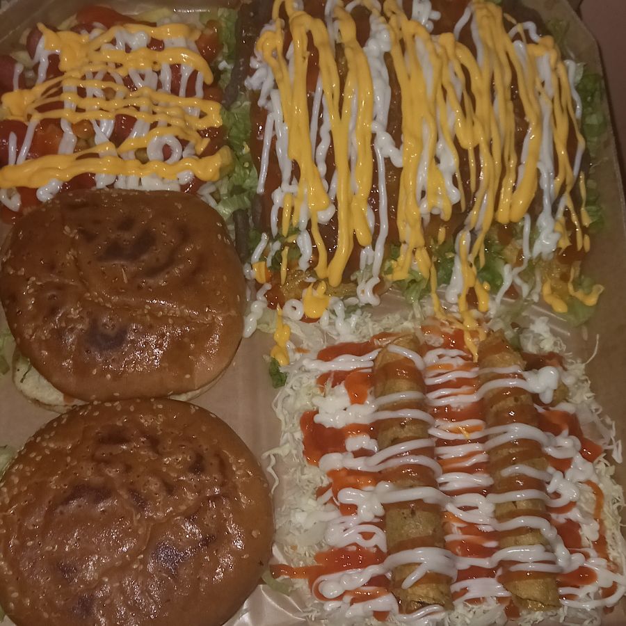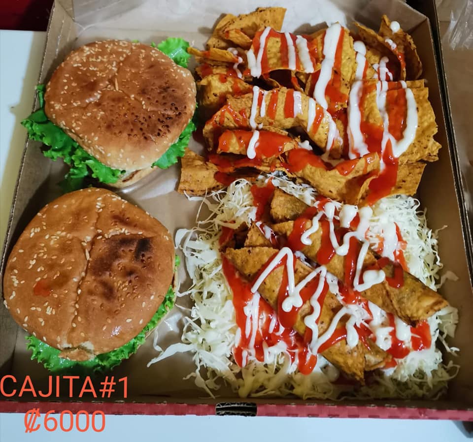 2 hamburguesas, 2 tacos, Nacho peq, salchipapas