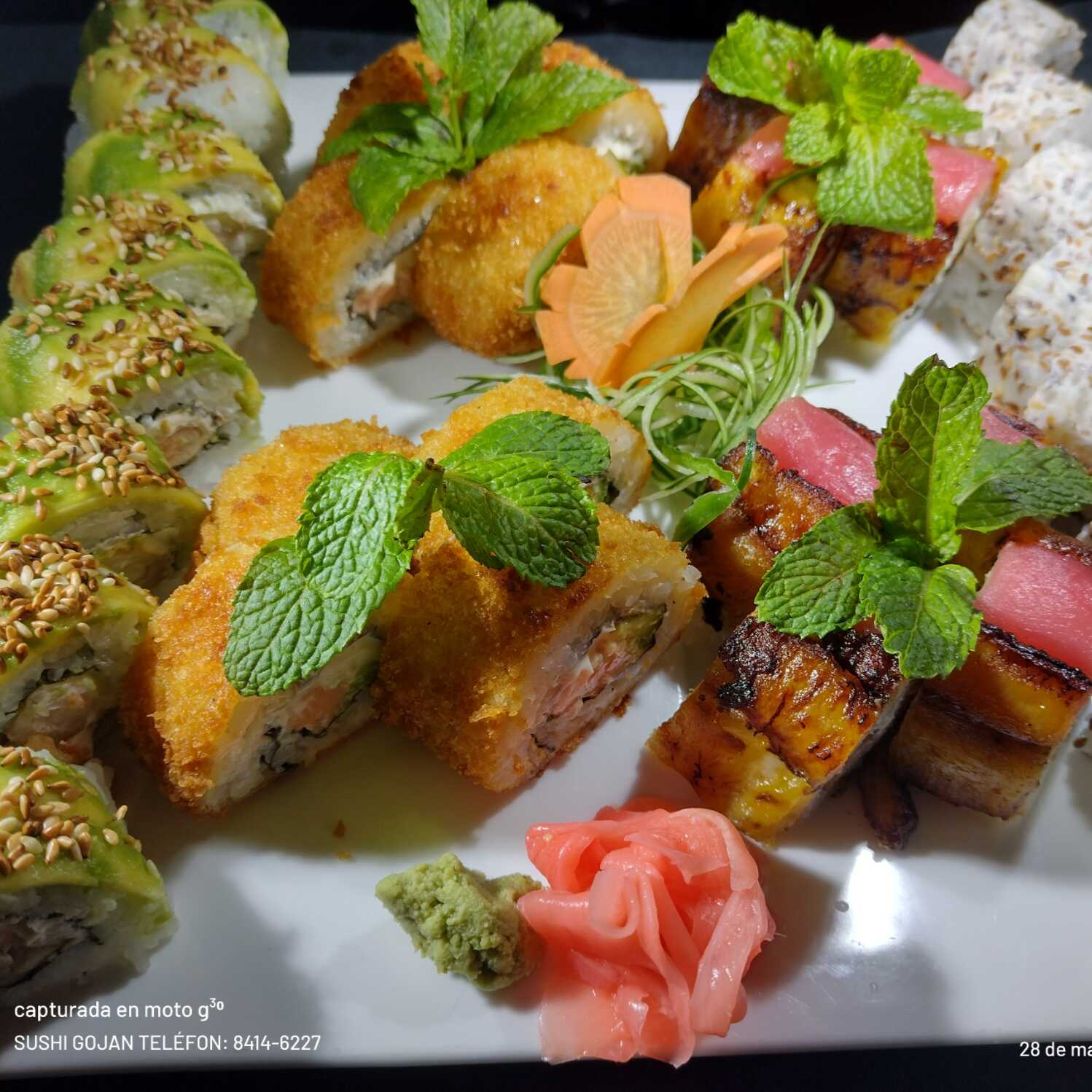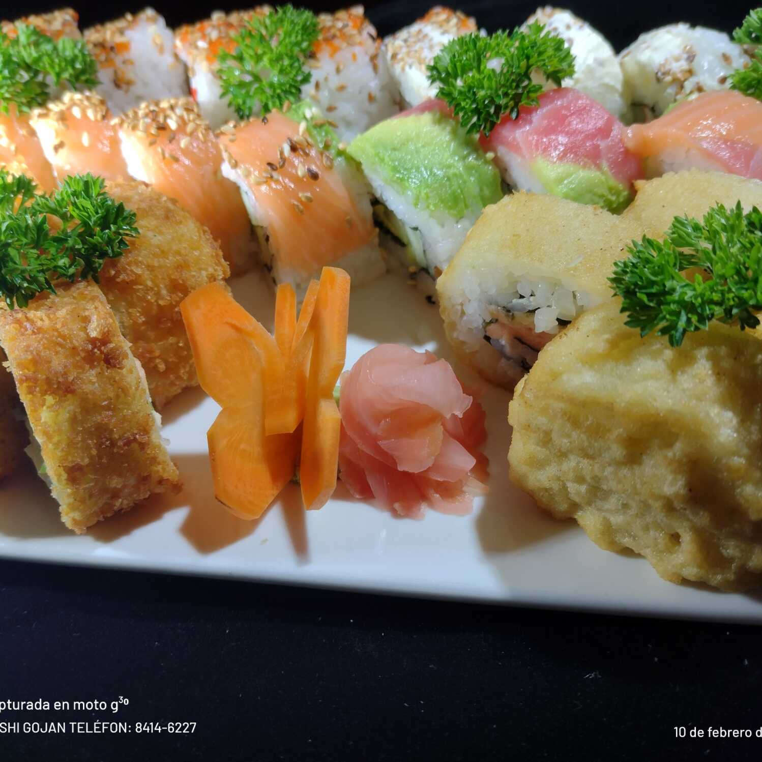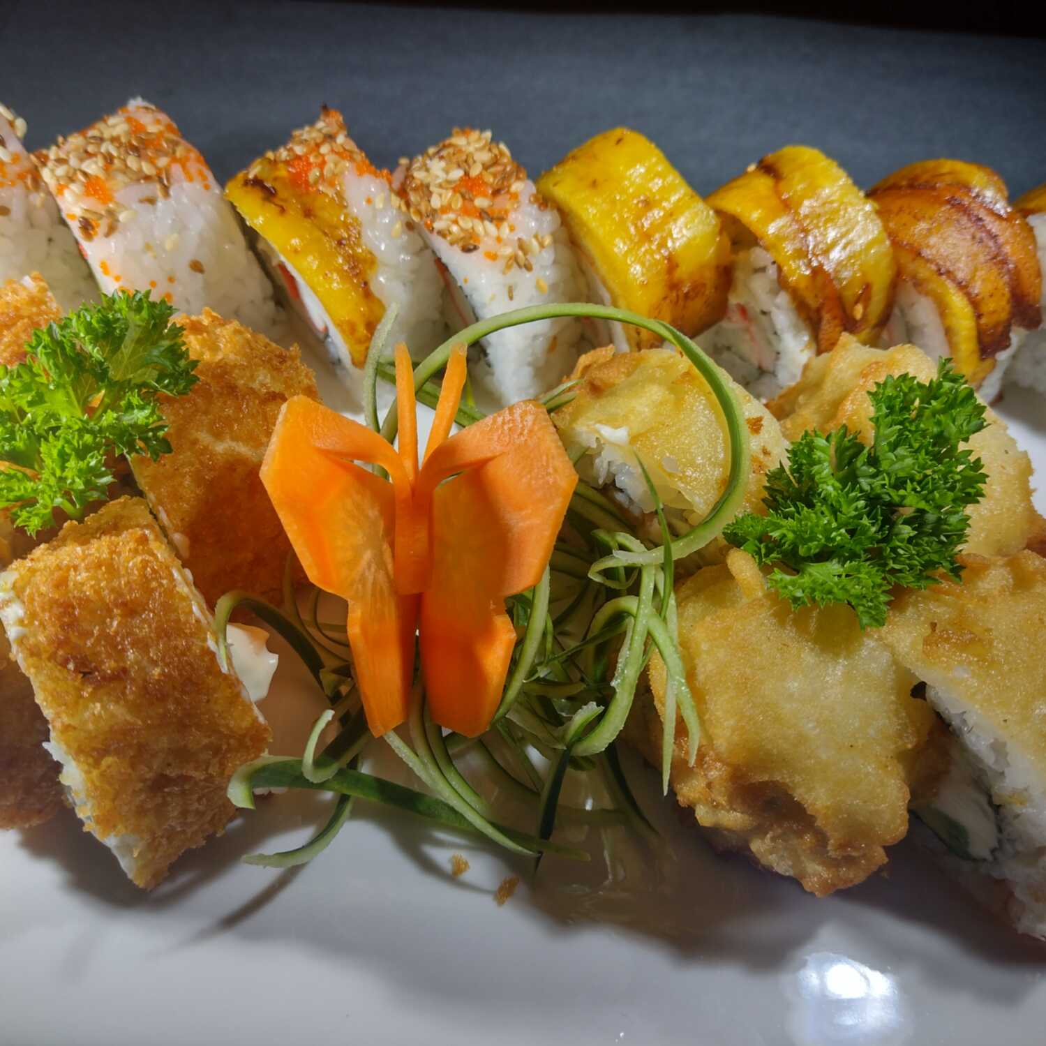 4 tempura, 4 furai, 4 california roll y 4 banana