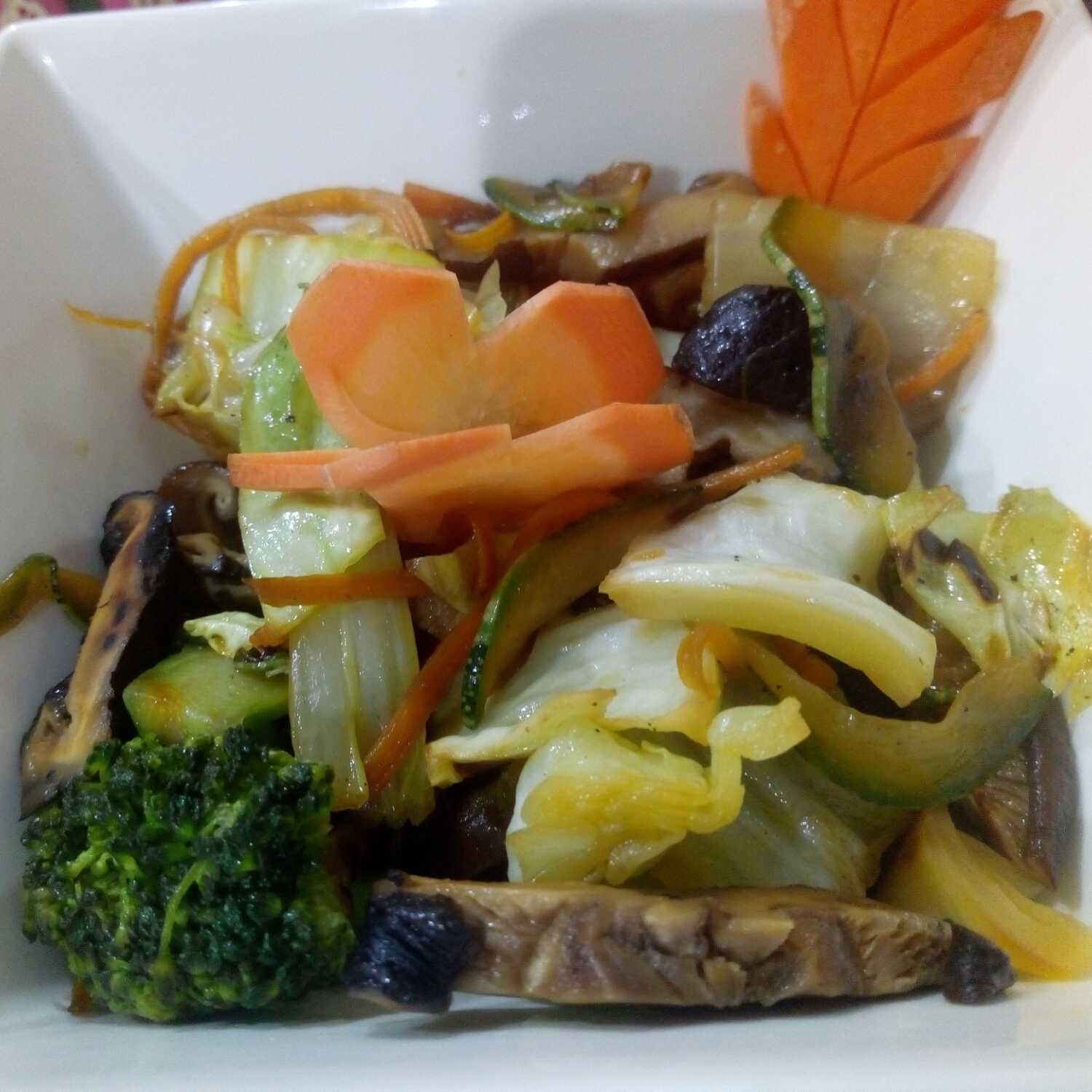 Verduras salteadas (brócoli, zanahoria, repollo, chitake, mostaza china y zucchini).