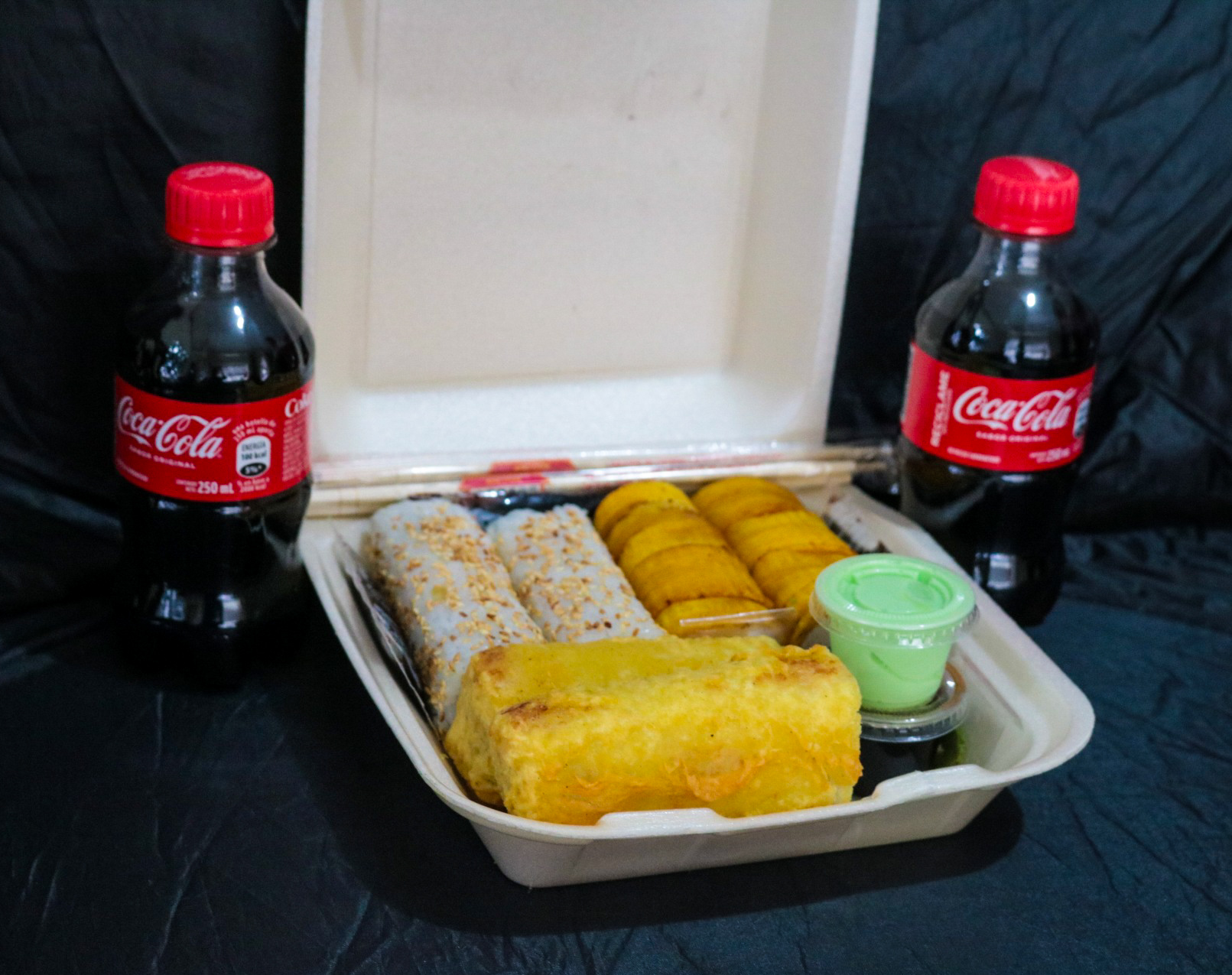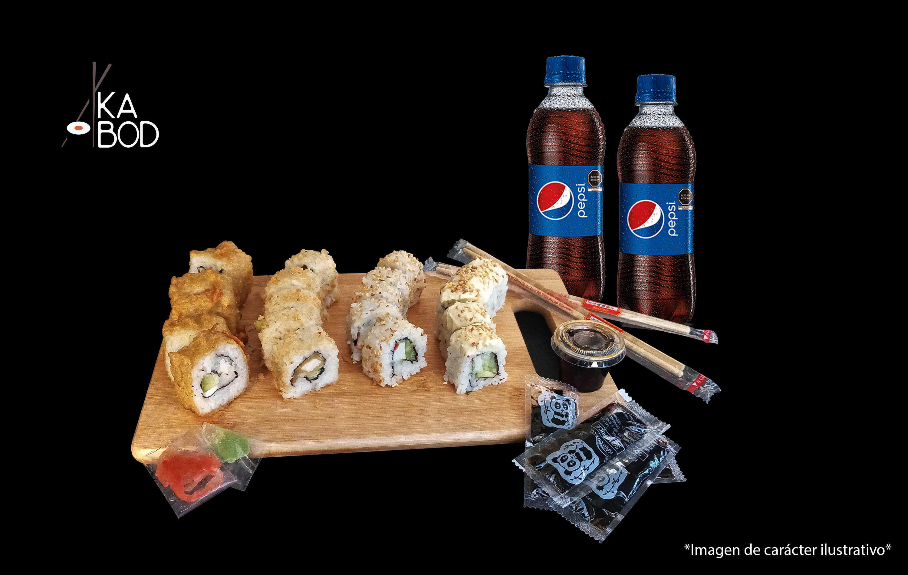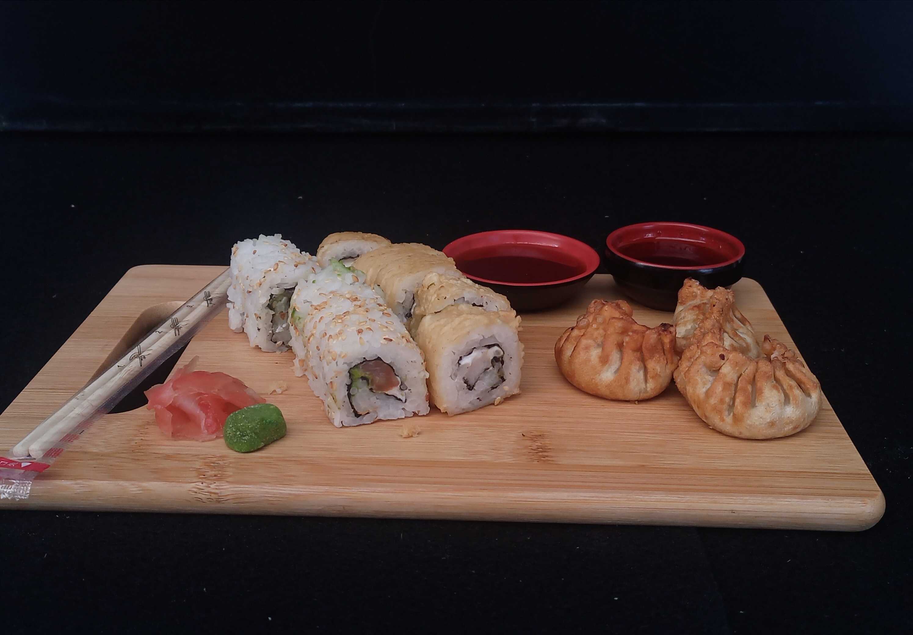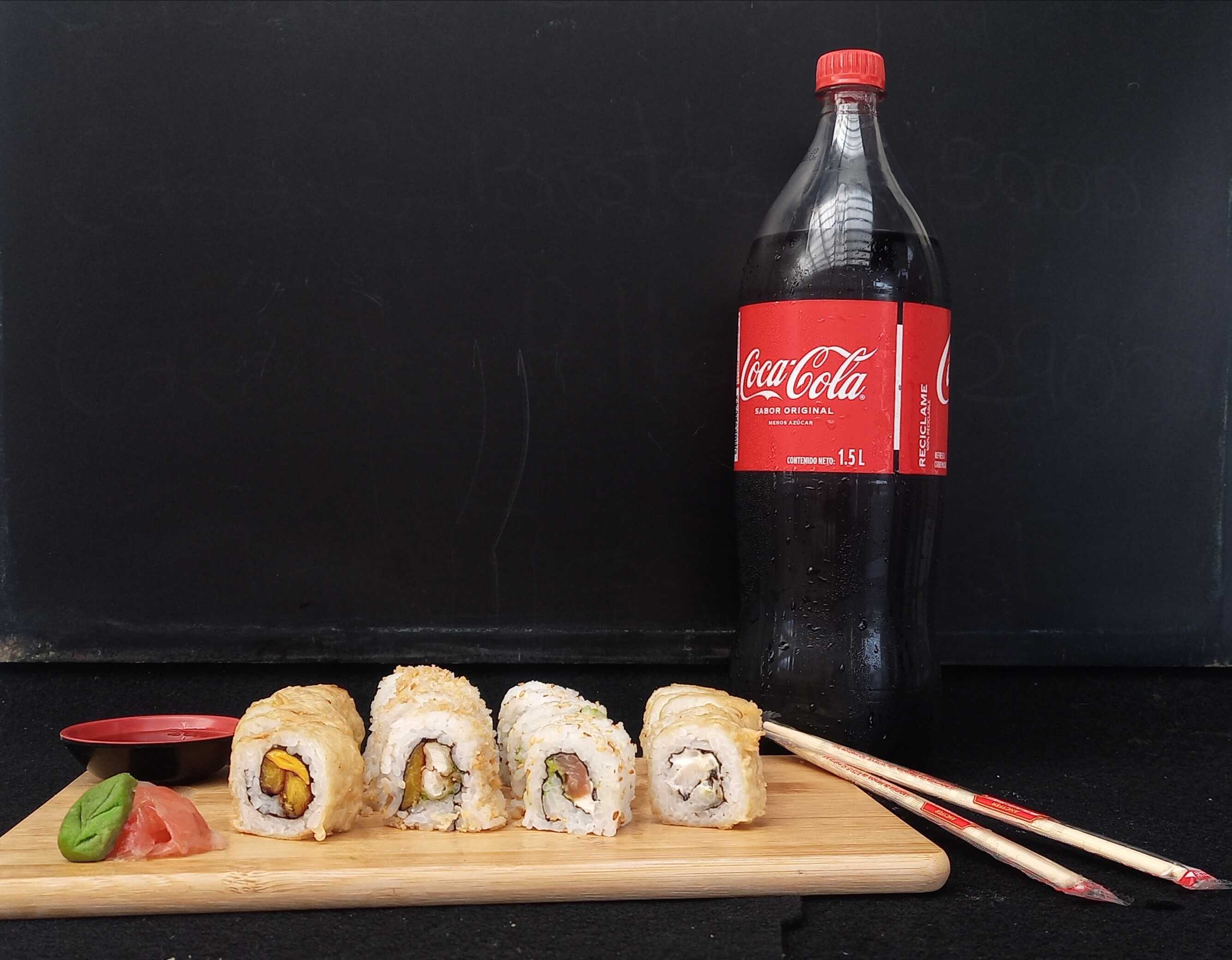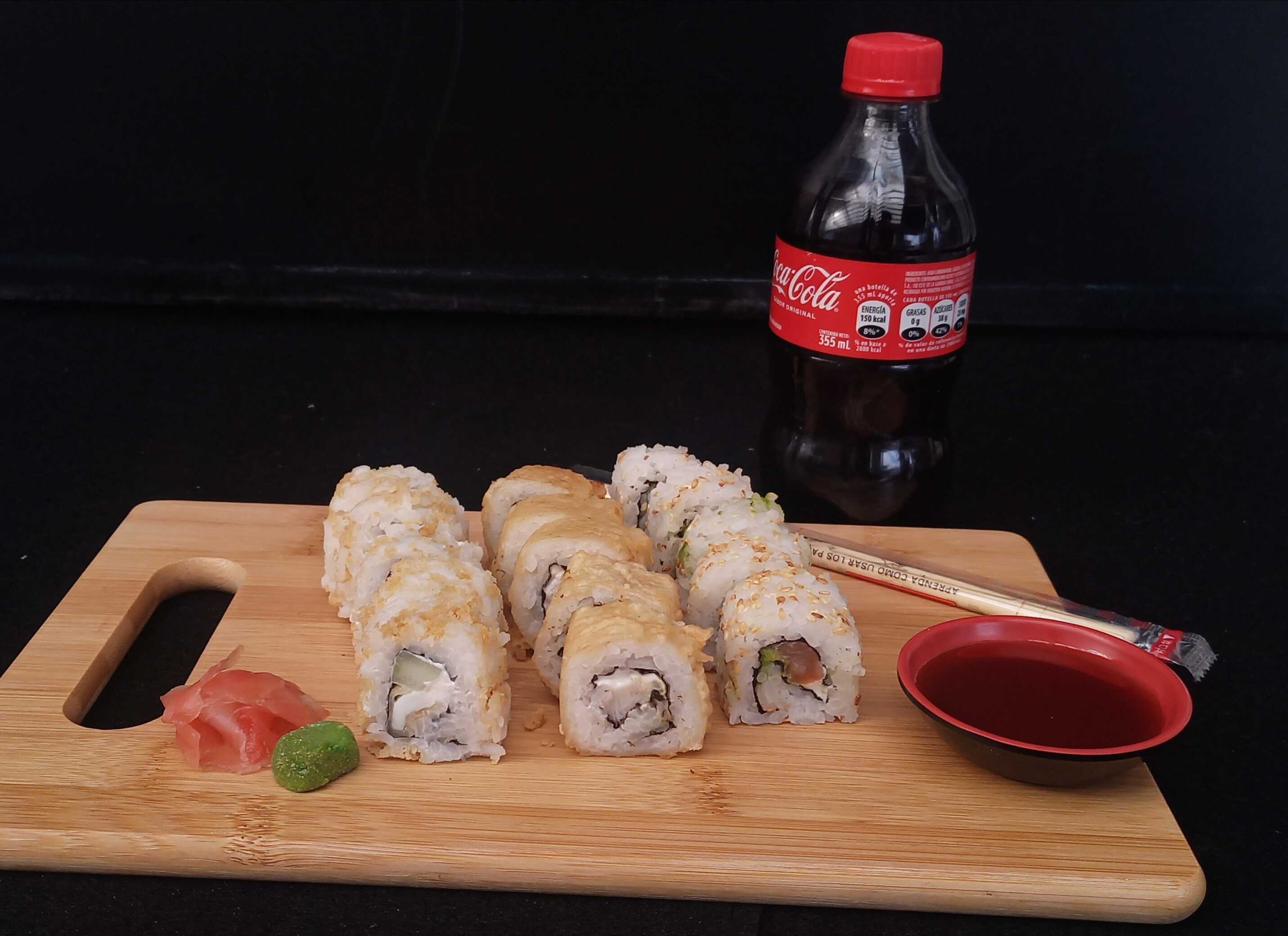 10pzs Tempura Atsui roll + 10pzs Chizu roll + 10pzs Philadelphia roll + 10pzs Chicken roll + 1 Bebida 1.5L