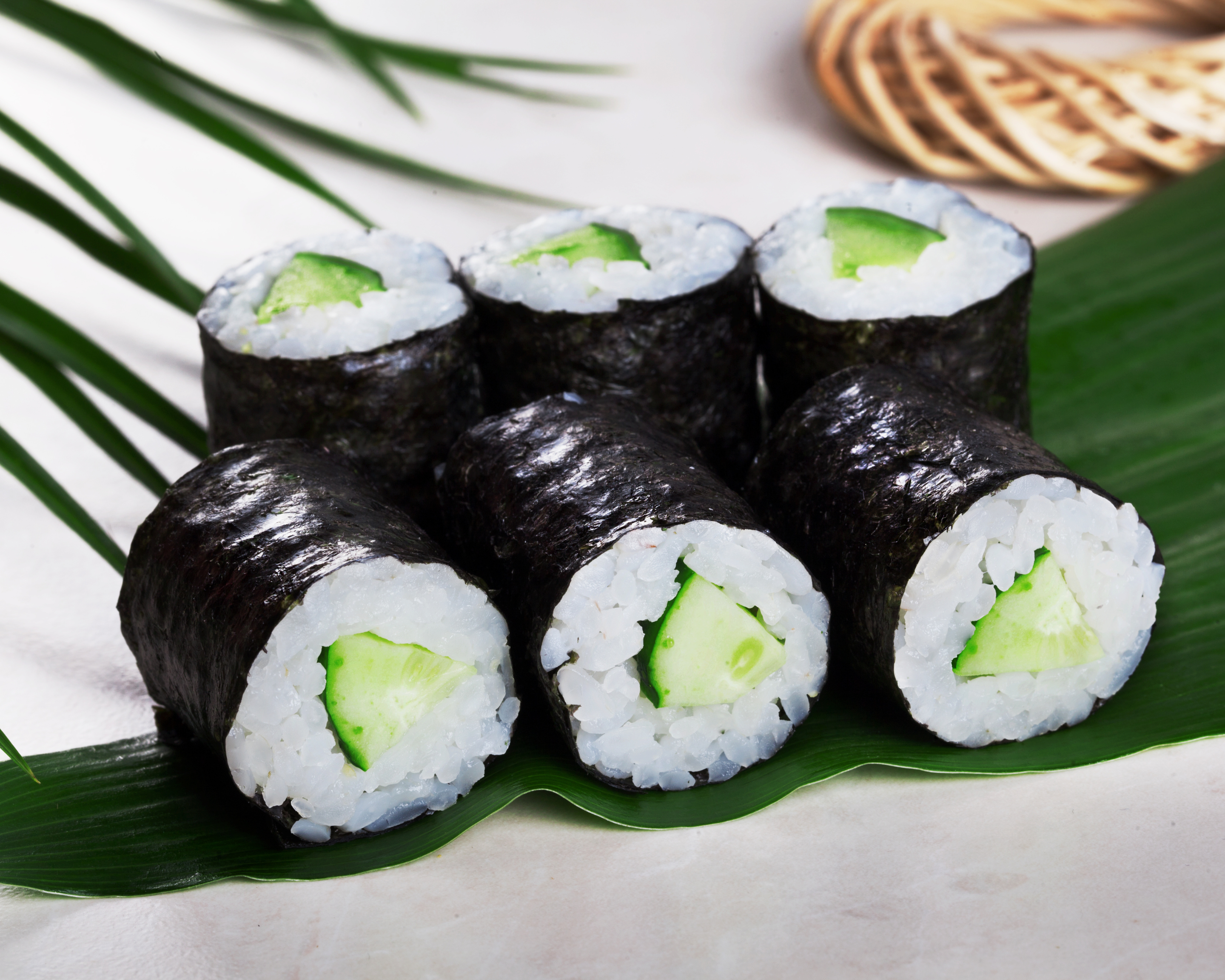 10 piezas. Ingredientes: Pepino, aguacate y kanikama, con cobertura de ajonjolí.