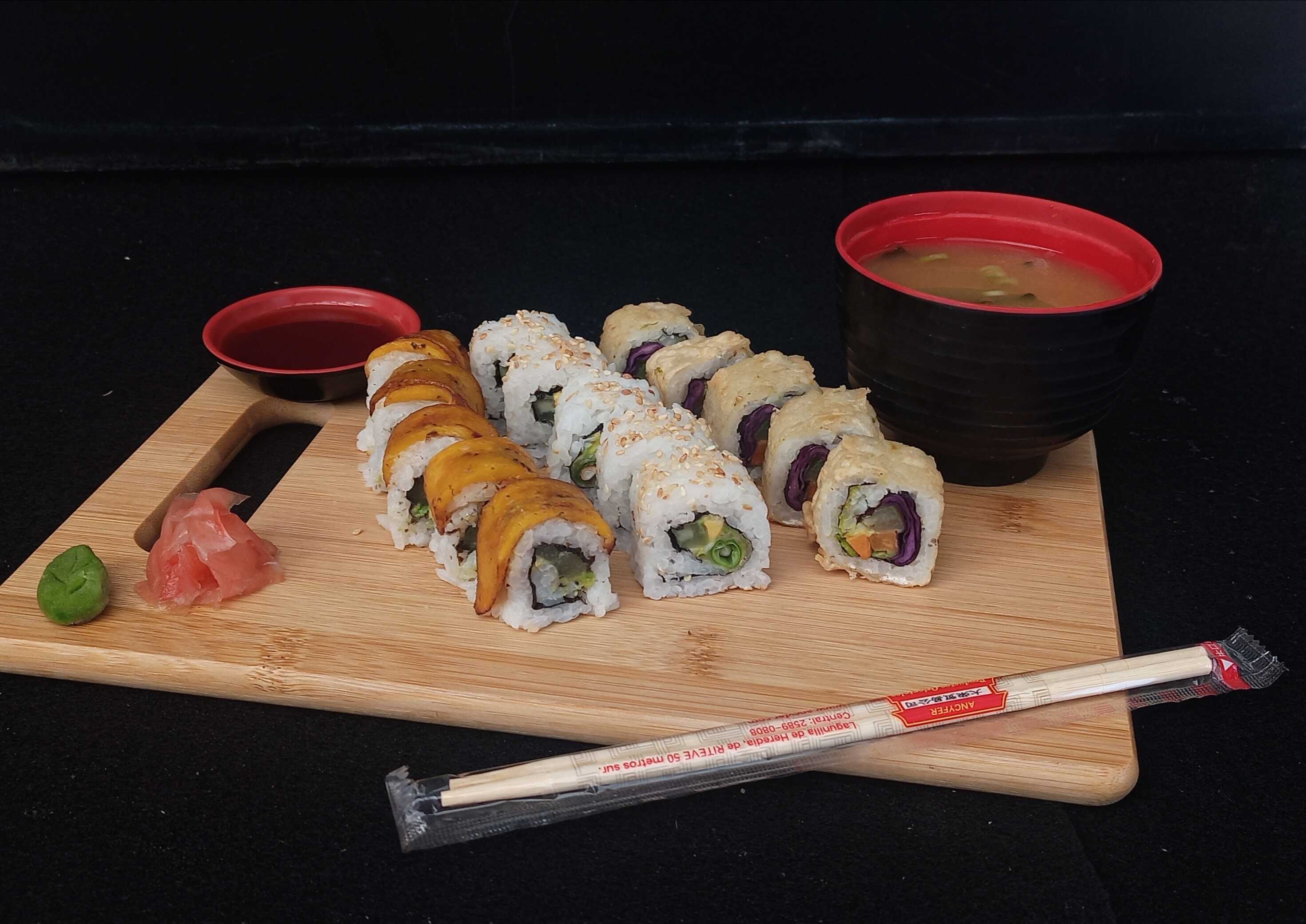10pzs Malusog roll + 10pzs Tico roll + 10pzs Sarada Tempura roll + 1 Miso soup