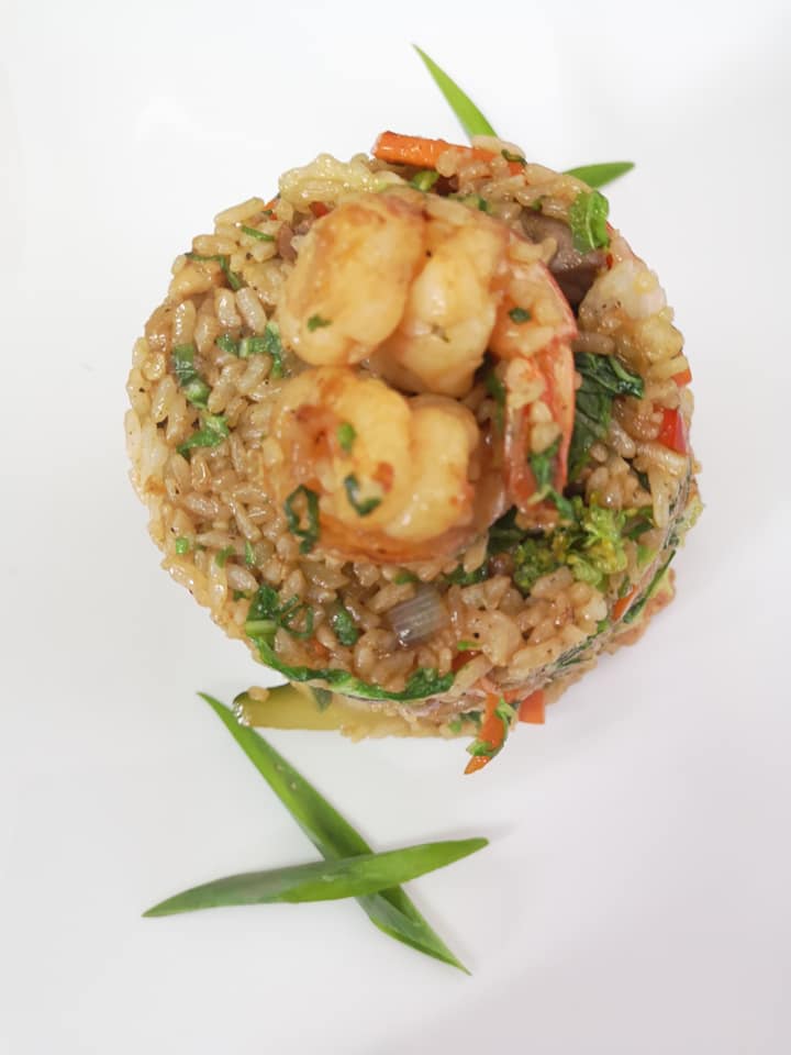 Arroz Gohan salteado al wok con mariscos y vegetales mixtos al estilo japonés.
