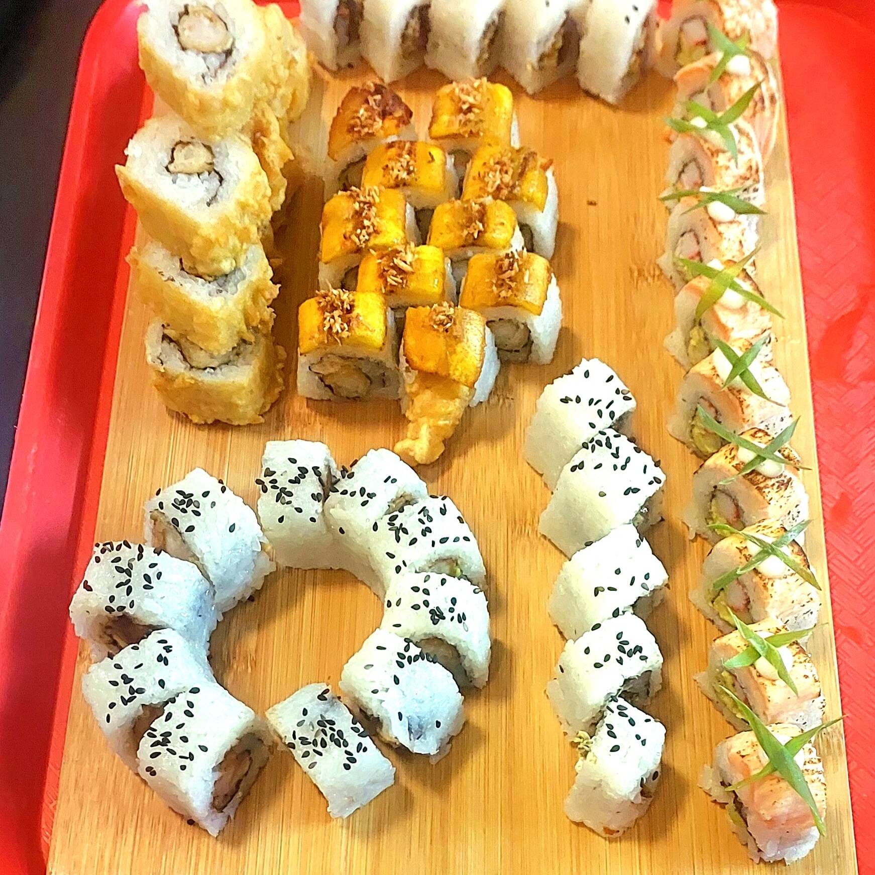 3 rollos de sushi Deluxe, 2 acompañamientos, 1 bebida natural.