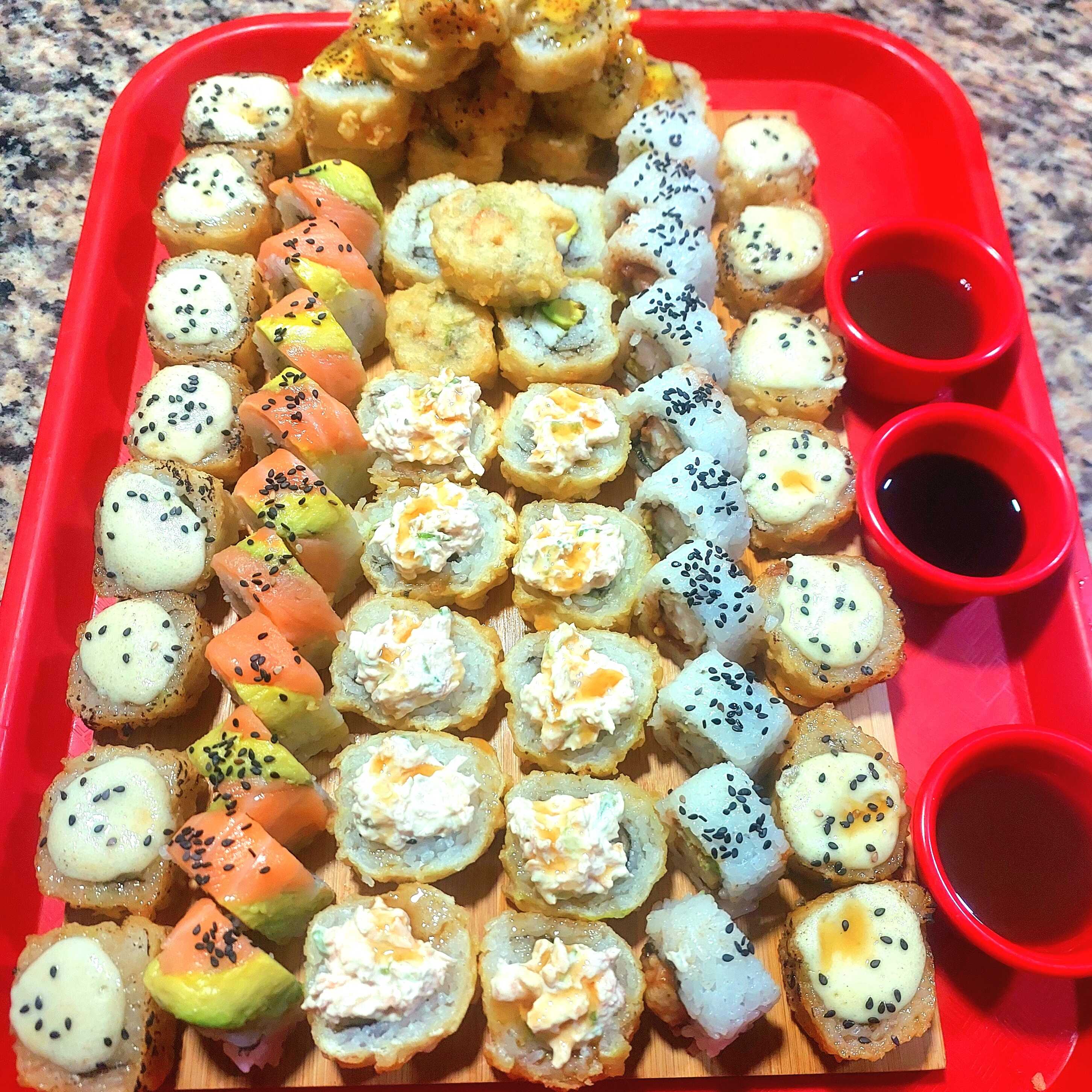 3 rollos de sushi clásico, 2 acompañamientos, 1 bebida natural.