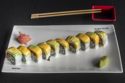 10 Piezas, hojuelas tempura, culantro, jalapeño y mayonesa con cobertura de queso amarillo y aguacate.
