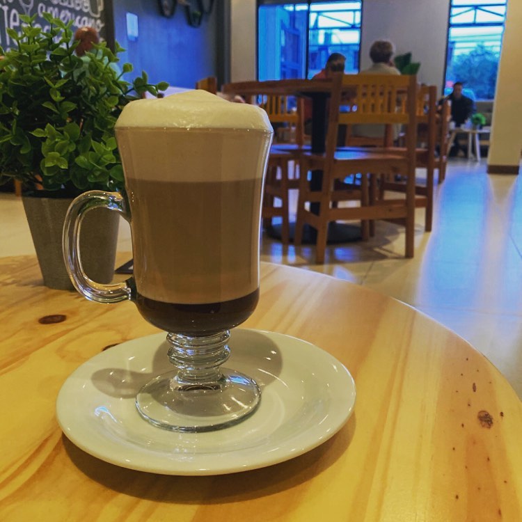 Leche, café espresso y sirope de Avellana