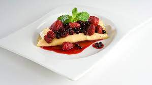 Crepa con frutos rojos y helado de vainilla