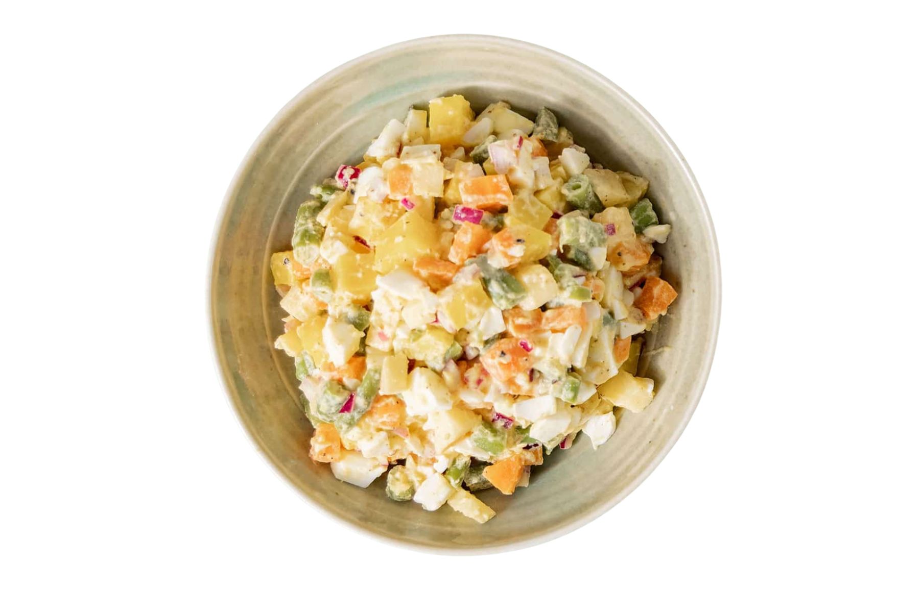 1 Arroz con pollo grande, 2 ensaladas campesinas pequeñas, 2 ordenes de frijoles molidos.