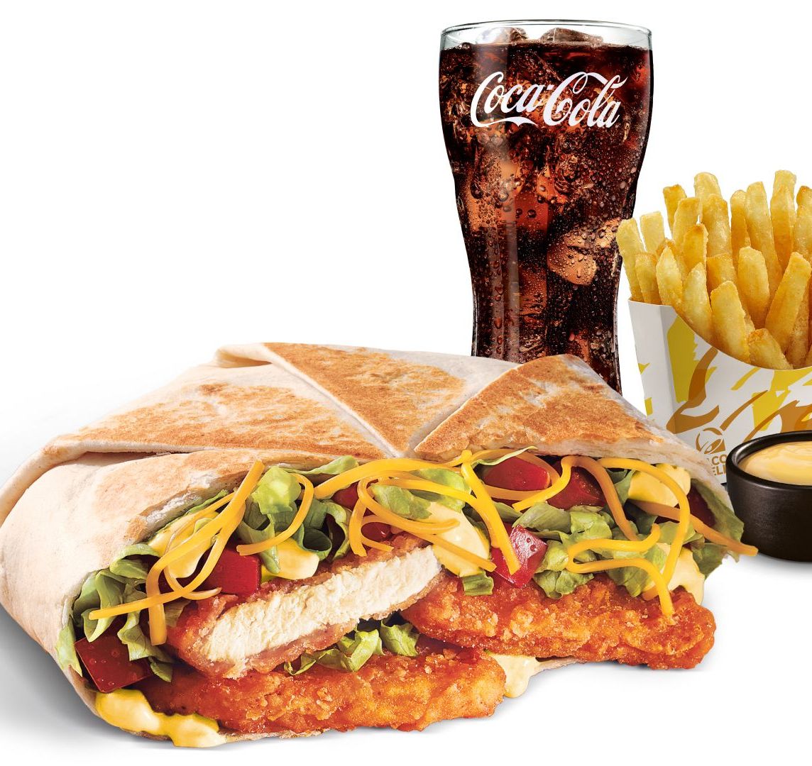 Crispywrap + Fiesta Fries con Salsa de Queso + Bebida 16 oz