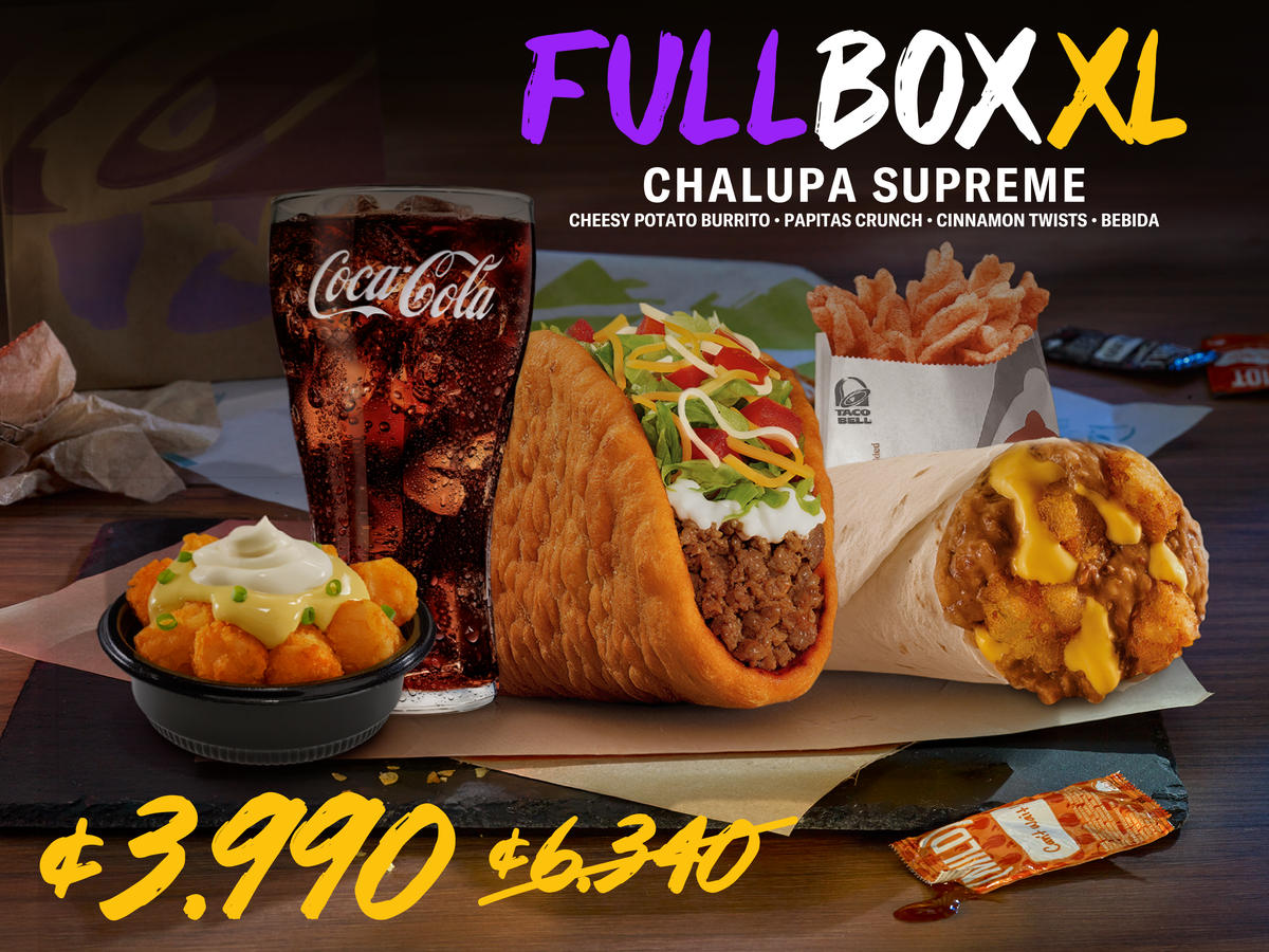 Chalupa Supreme + Burrito 5 capas + Taco + Fiesta Fries Supreme + Bebida 22 oz