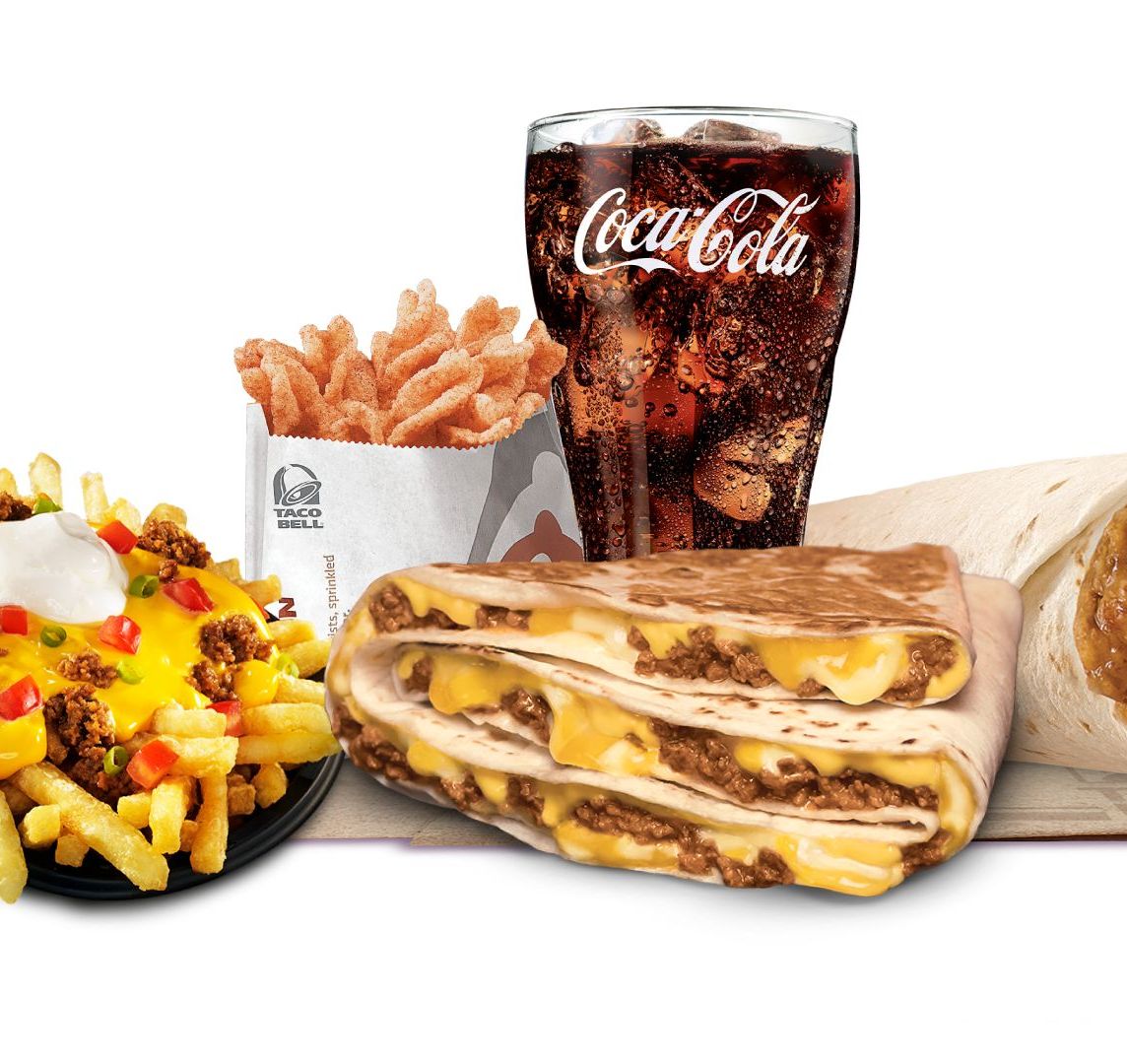 Chalupa Supreme + Cheesy Potato Burrito + Fiesta Fries Supreme + Cinnamon Twist + Bebida 16 oz