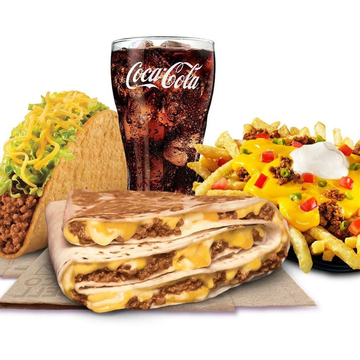 Triple Crunchywrap + Double Decker + Taco + Fiesta Fries Supreme + Bebida 22 oz