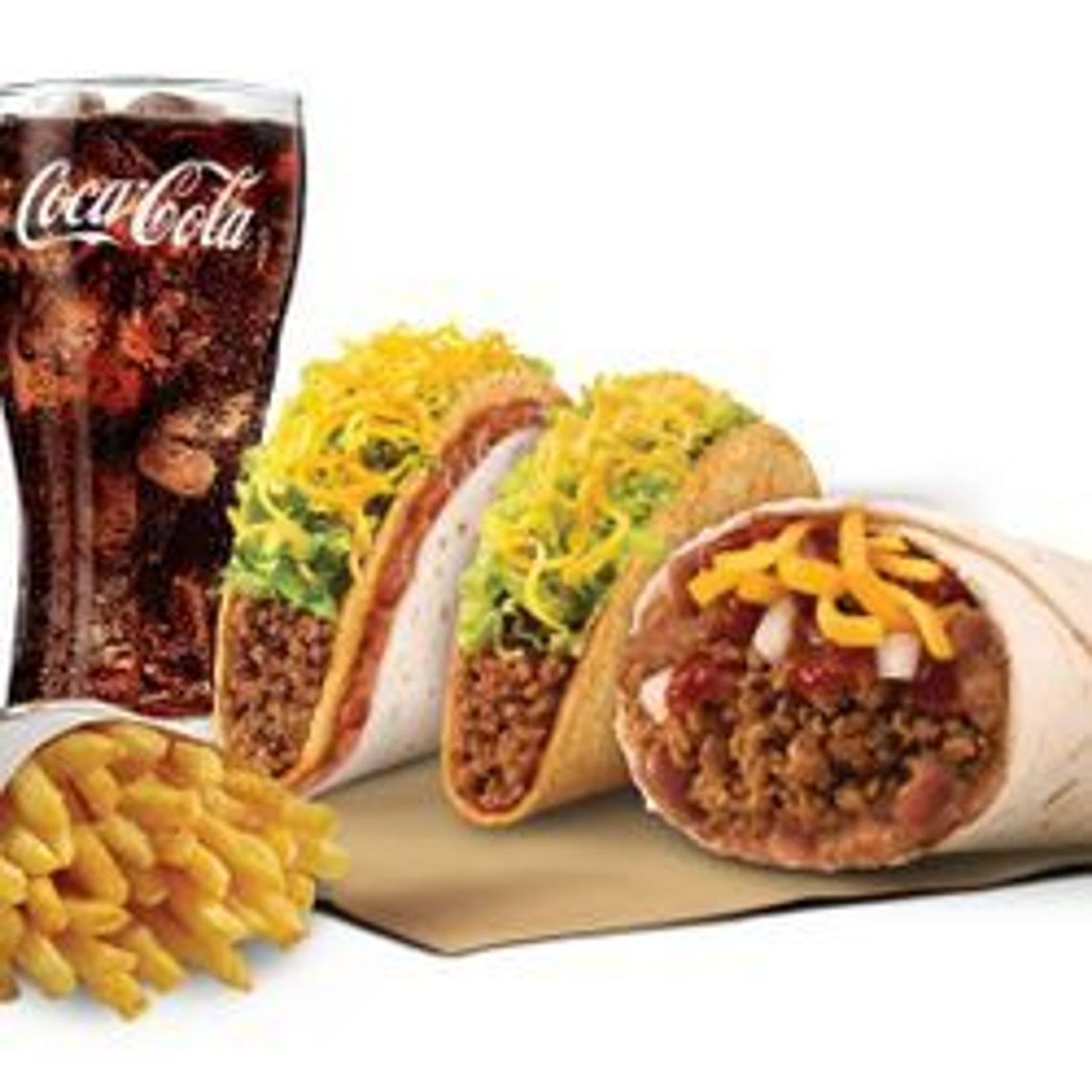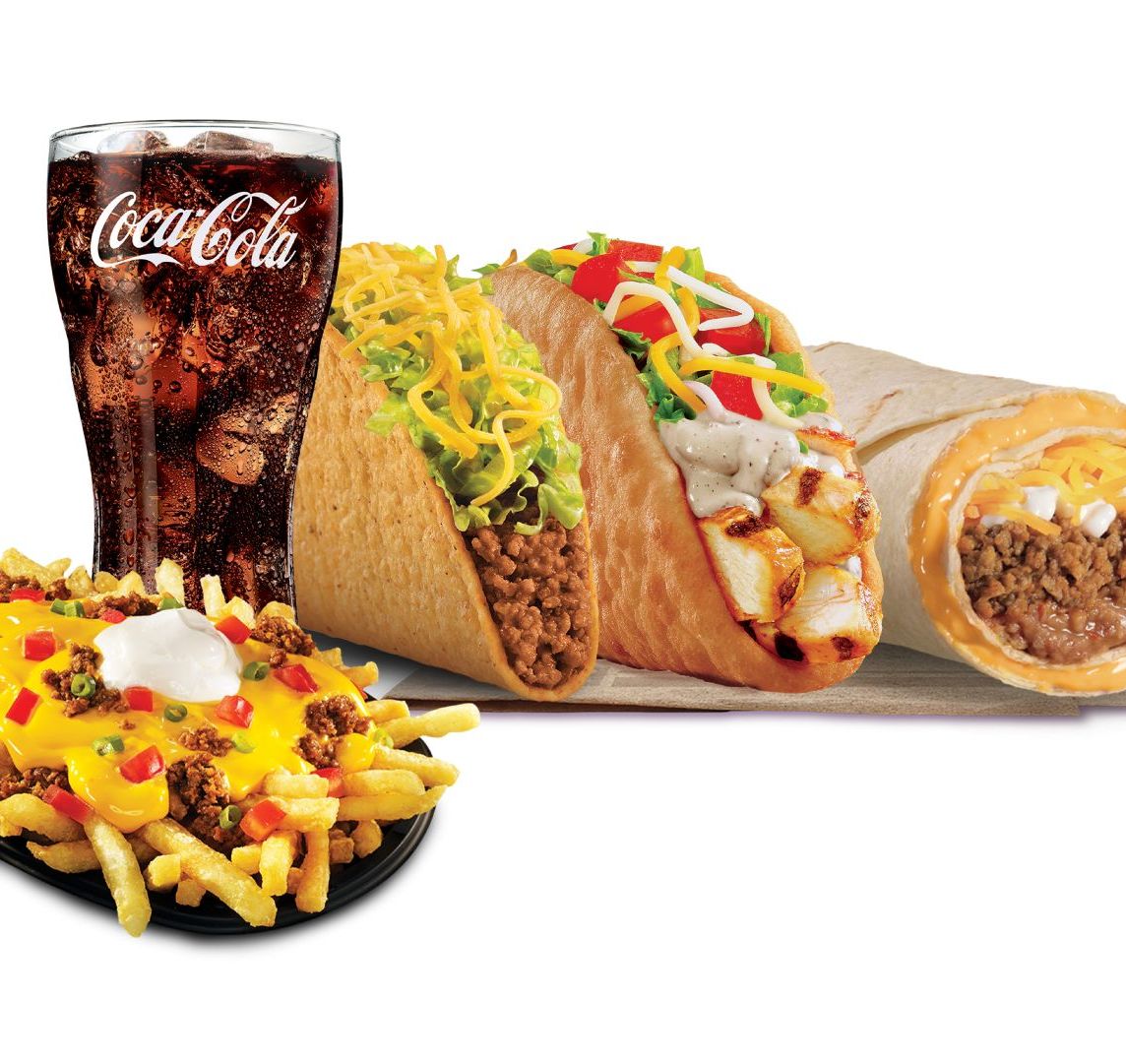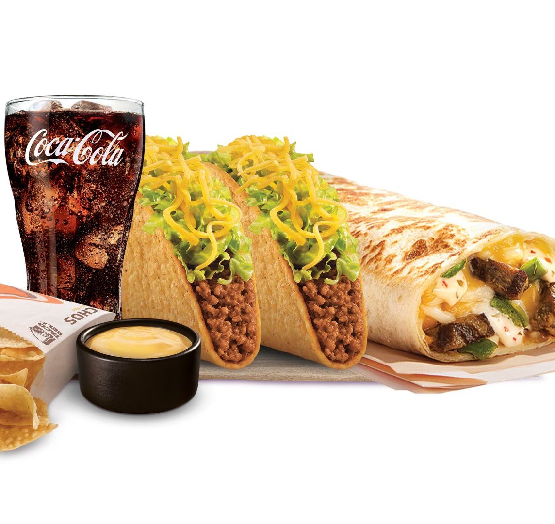 Burrito Combinado+ Double Decker + Taco Original + Fiesta Fries con Salsa de Queso+ Bebida 16 oz