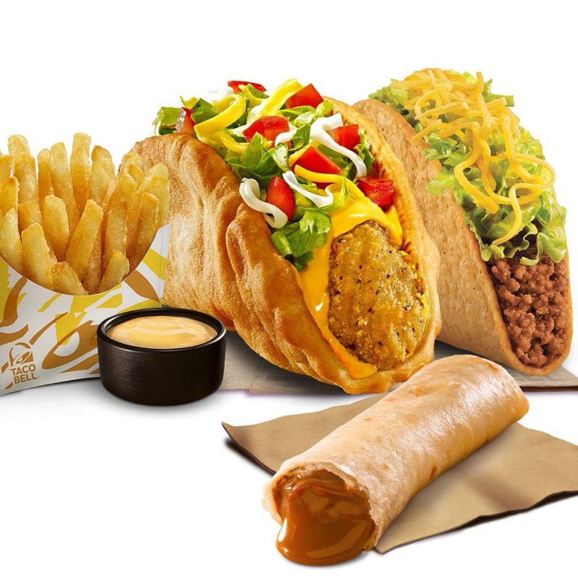 Crispy Chicken Chalupa Salsa de Queso + Taco Original + Fiesta Fries con Salsa de Queso + Flauta Dulce
