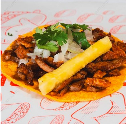 Deliciosa tortilla de maíz con carne al pastor.