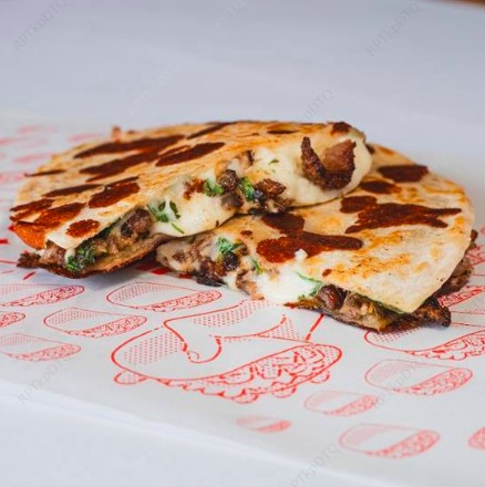 Deliciosa tortilla de trigo, queso mozzarella, guacamole.