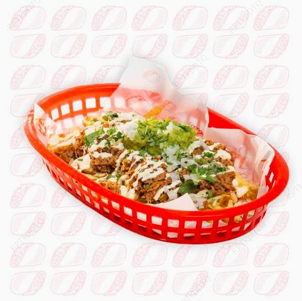 Doritos, queso mozzarella, natilla, guacamole.