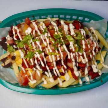 300 gramos de papas fritas, servidas con frijoles molidos, natilla, queso cheddar, pico de gallo y una proteína a elegir.