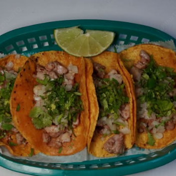 Orden de 4 tacos, en tortilla de maíz, con una proteína a elegir, cebolla y culantro.