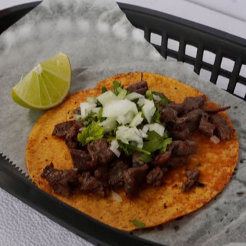 Taco individual en tortilla de maíz, proteína a elegir, cebolla y culantro.